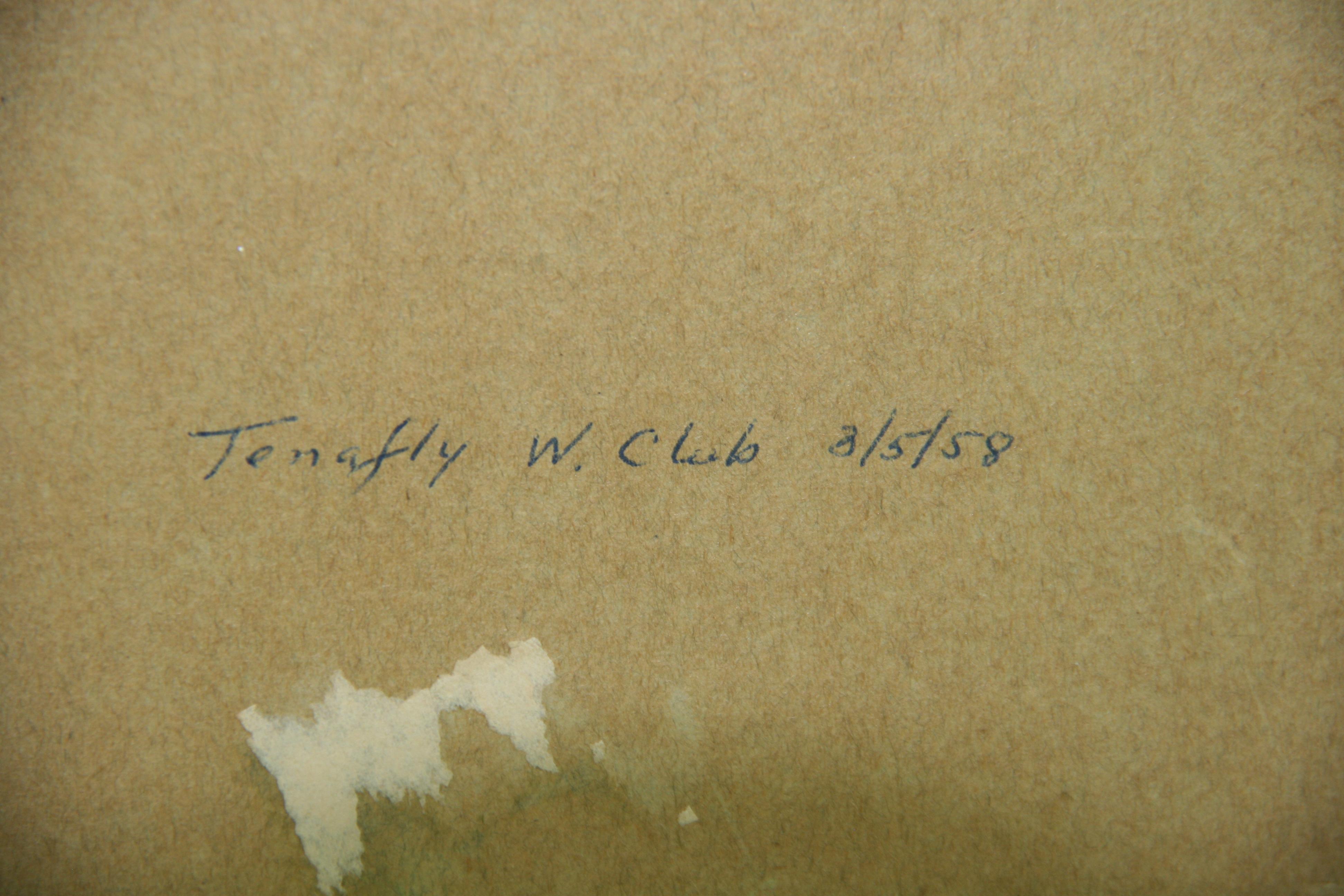 White water rapids in a redwood forest creek and a rocky hillside in the background is beautifully captured by California artist Mildred Vejtasa Fenner (...