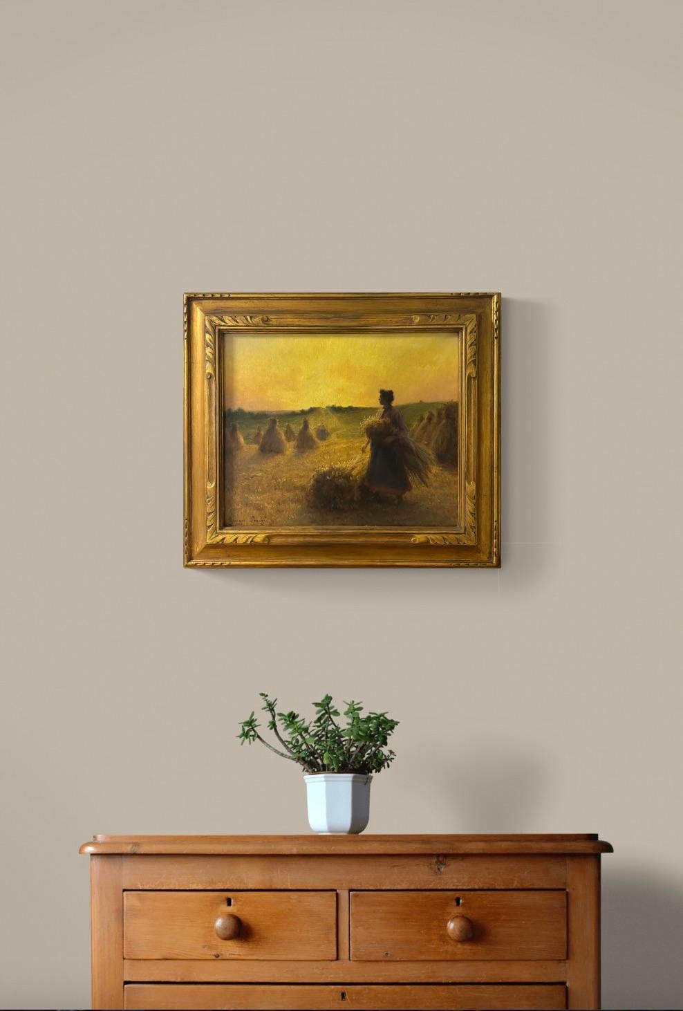 Tonalist Painting Sunset Figures Wheat Barbizon Framed 19th Century Oil Painting