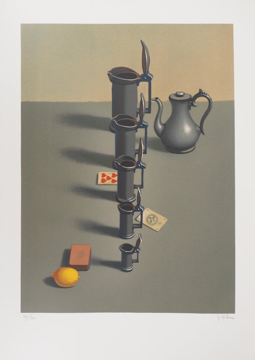 Georges Rohner ( French, 1913-2000)was a Paris born painter and printmaker of international repute. Known stylistically as a realist, his creative endeavors often edged towrd surrealism. He studied at the Beaux-Arts in Paris, France under the French painter and teacher, Lucien Simon (1861-1945). Rohner also had an active teaching career, first as a lecturer at the Ecole de Beau Arts, and then by 1962, as a professor at Ecole Nationale Superieure des Arts Decoratifs, both in Paris. In 1963 he was awarded the Order of Arts and Letters. Later that decade, Rohner was elected to the Academie des Beaux Arts, Paris where he held the chair of Ingres. The Museum of Fine Arts in Quimper, France held a retrospective of Rohner's oeurve in 1987. Rohner's work has been exhibited regularly throughout Europe and the United States, including the Venice Biennale, nd Wildenstein & Co. in New York.