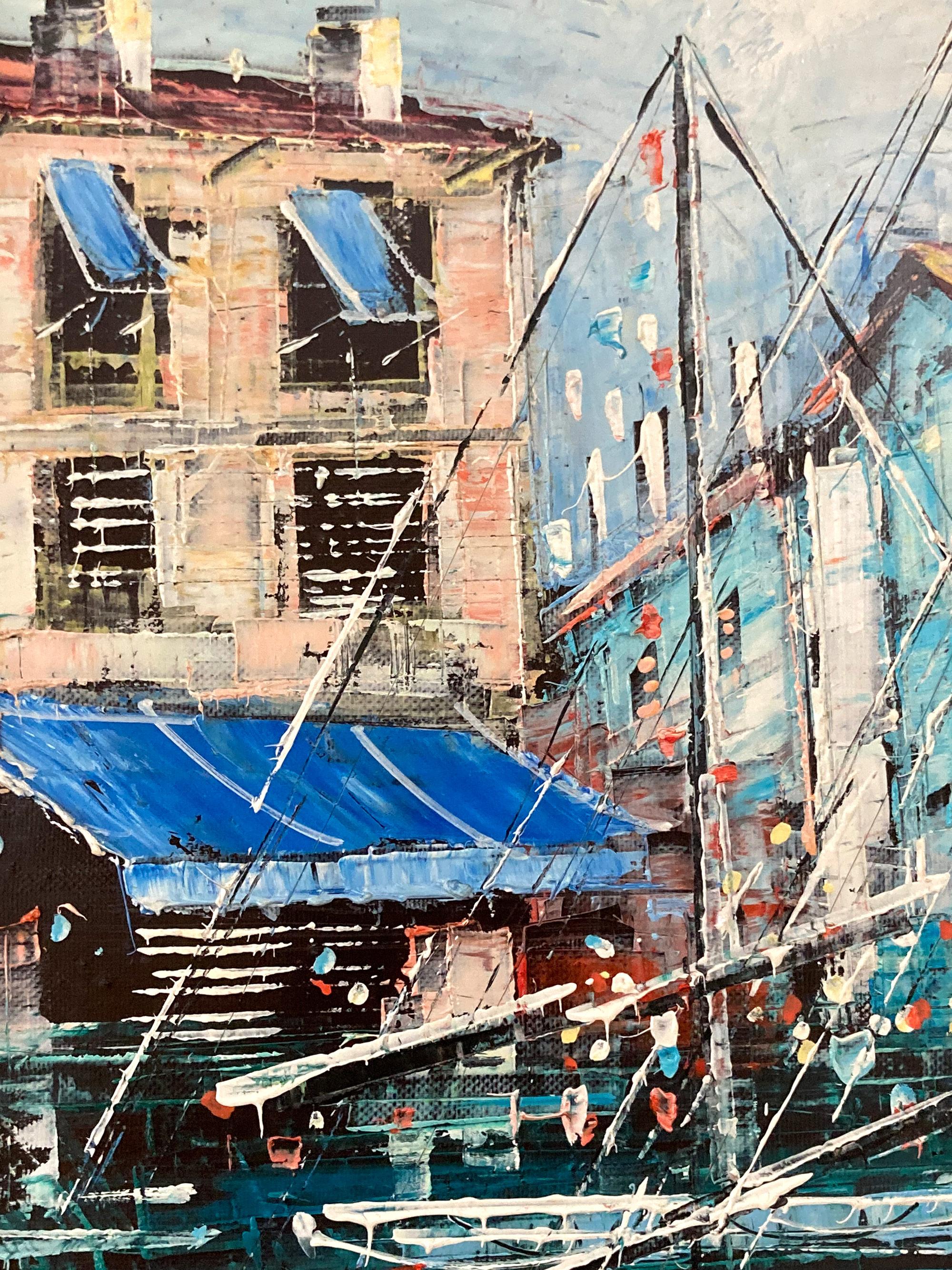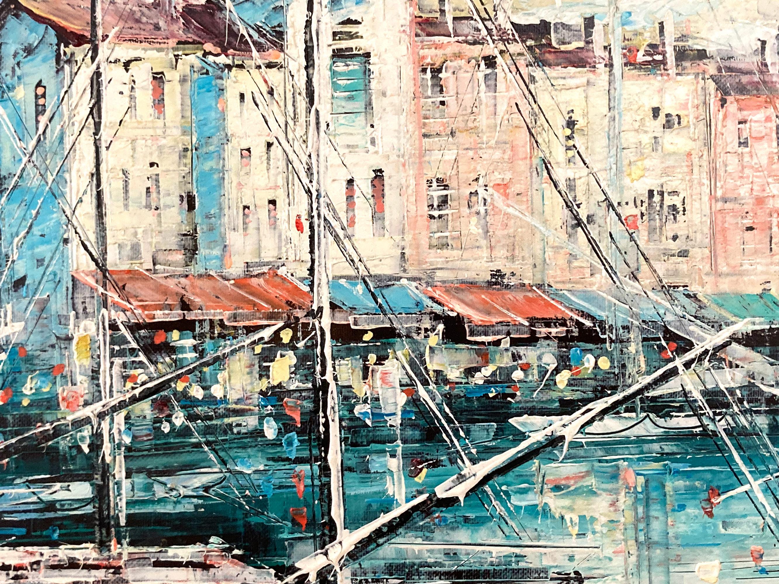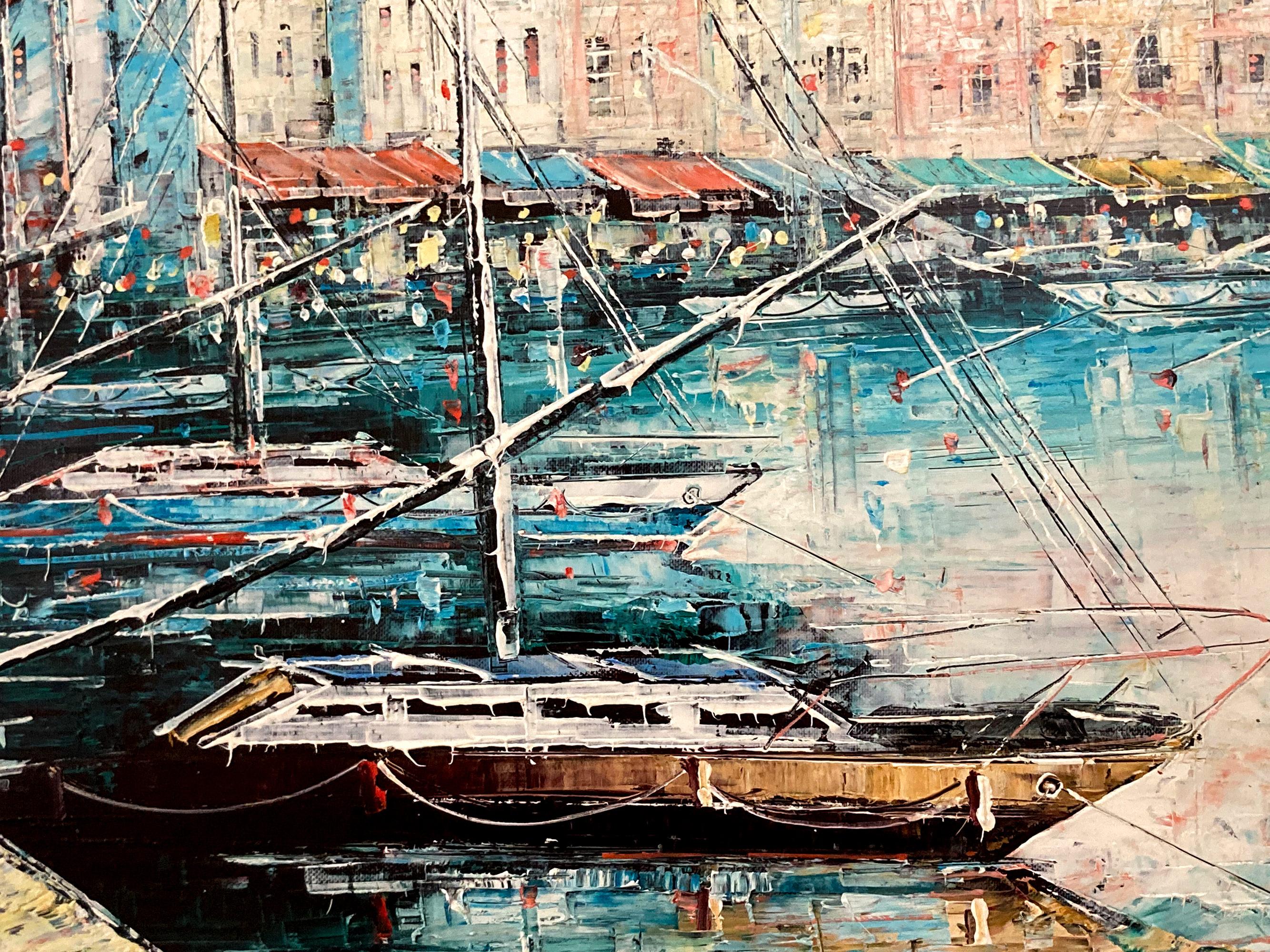 "St. Tropez" Parisian Marine Harbor Scene Impressionist Oil Painting on Canvas