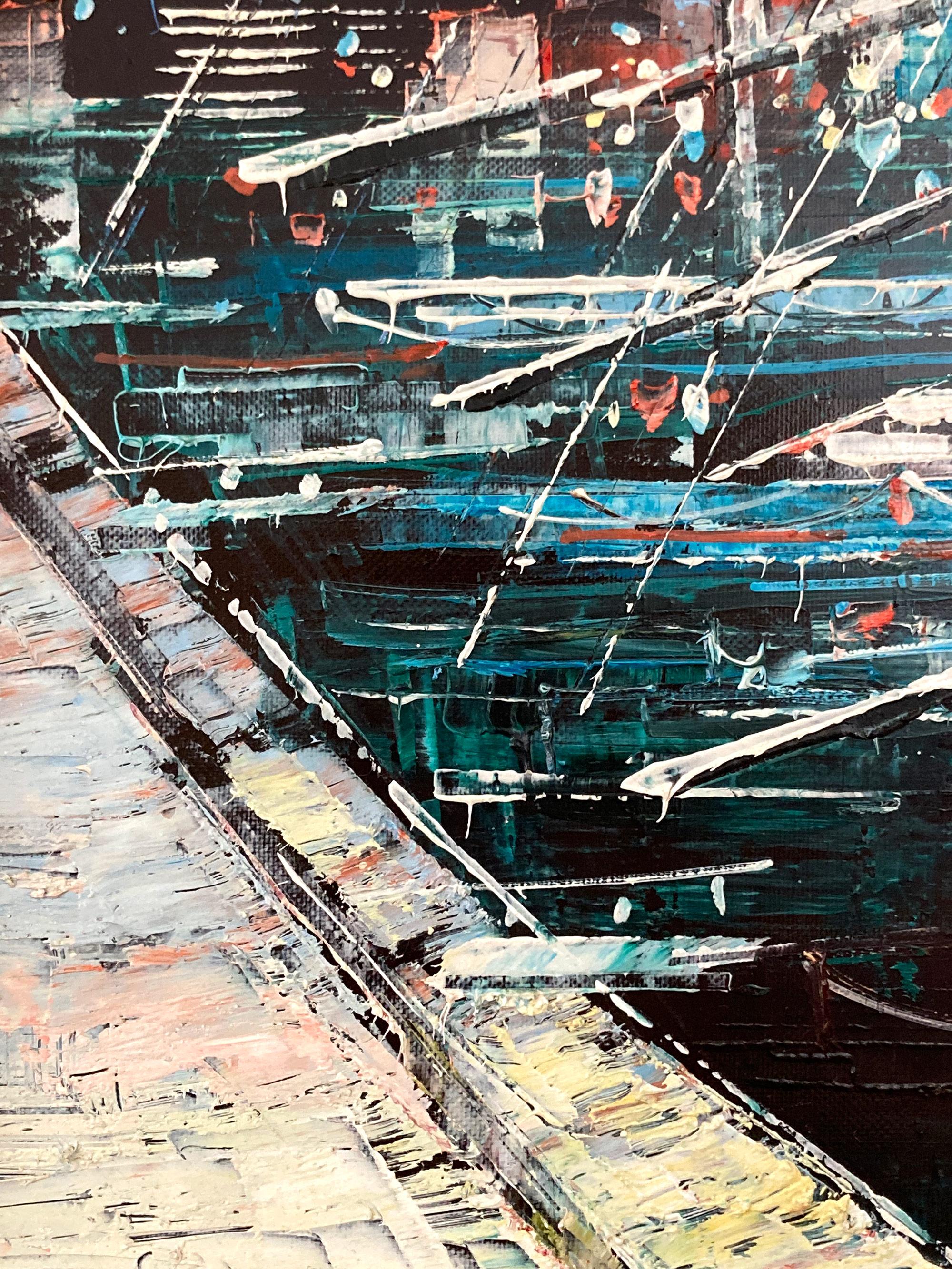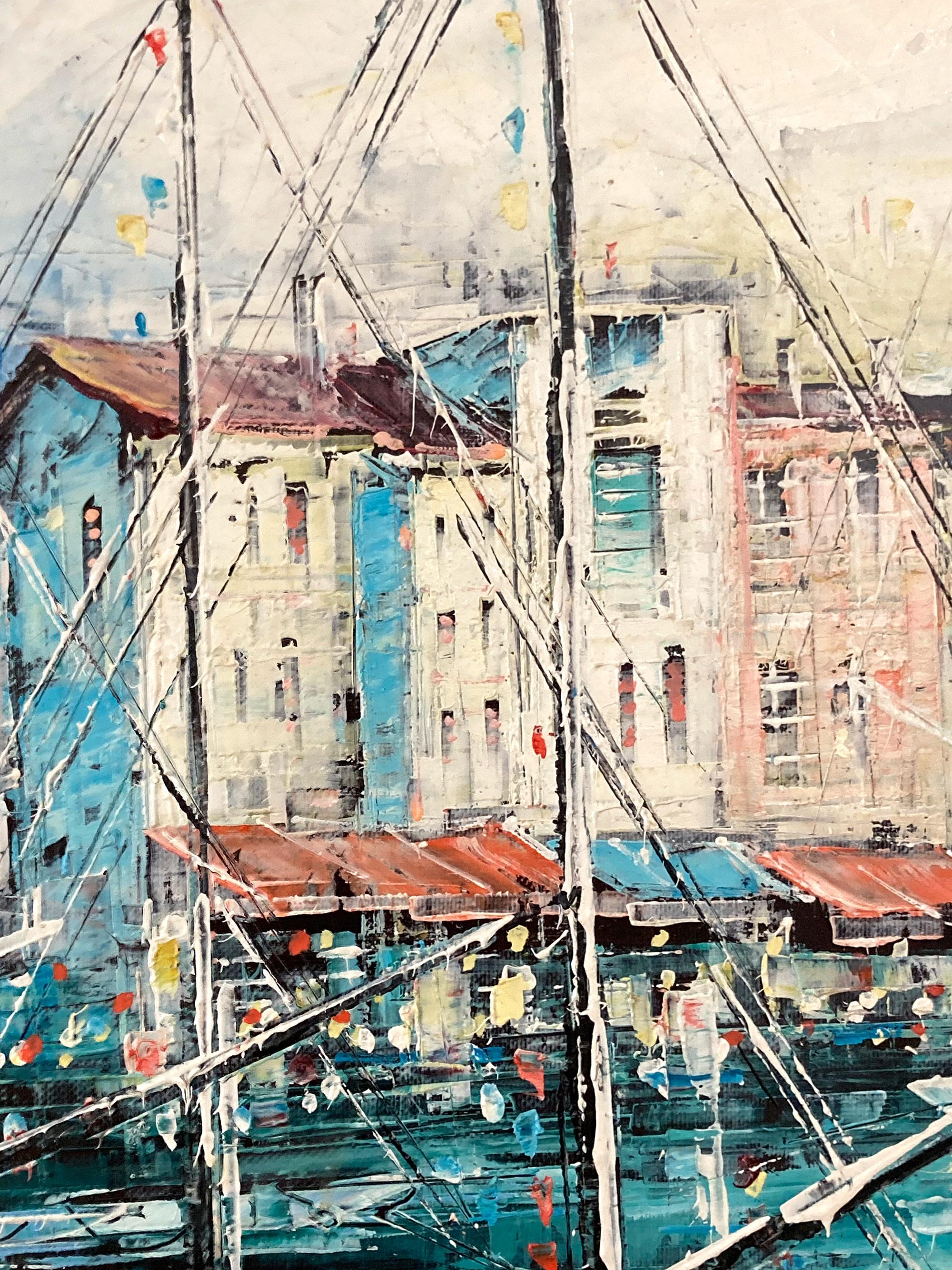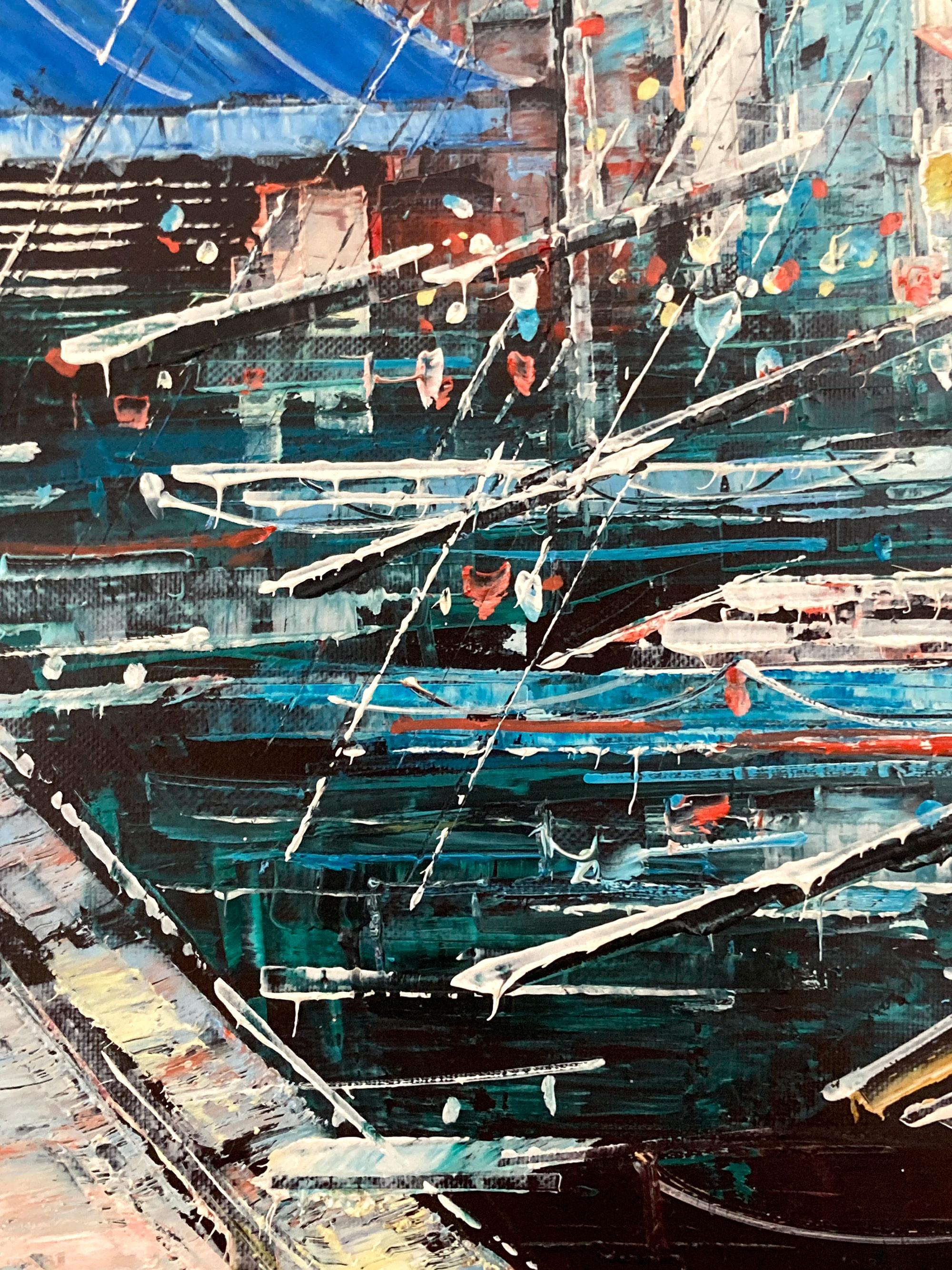 "St. Tropez" Parisian Marine Harbor Scene Impressionist Oil Painting on Canvas