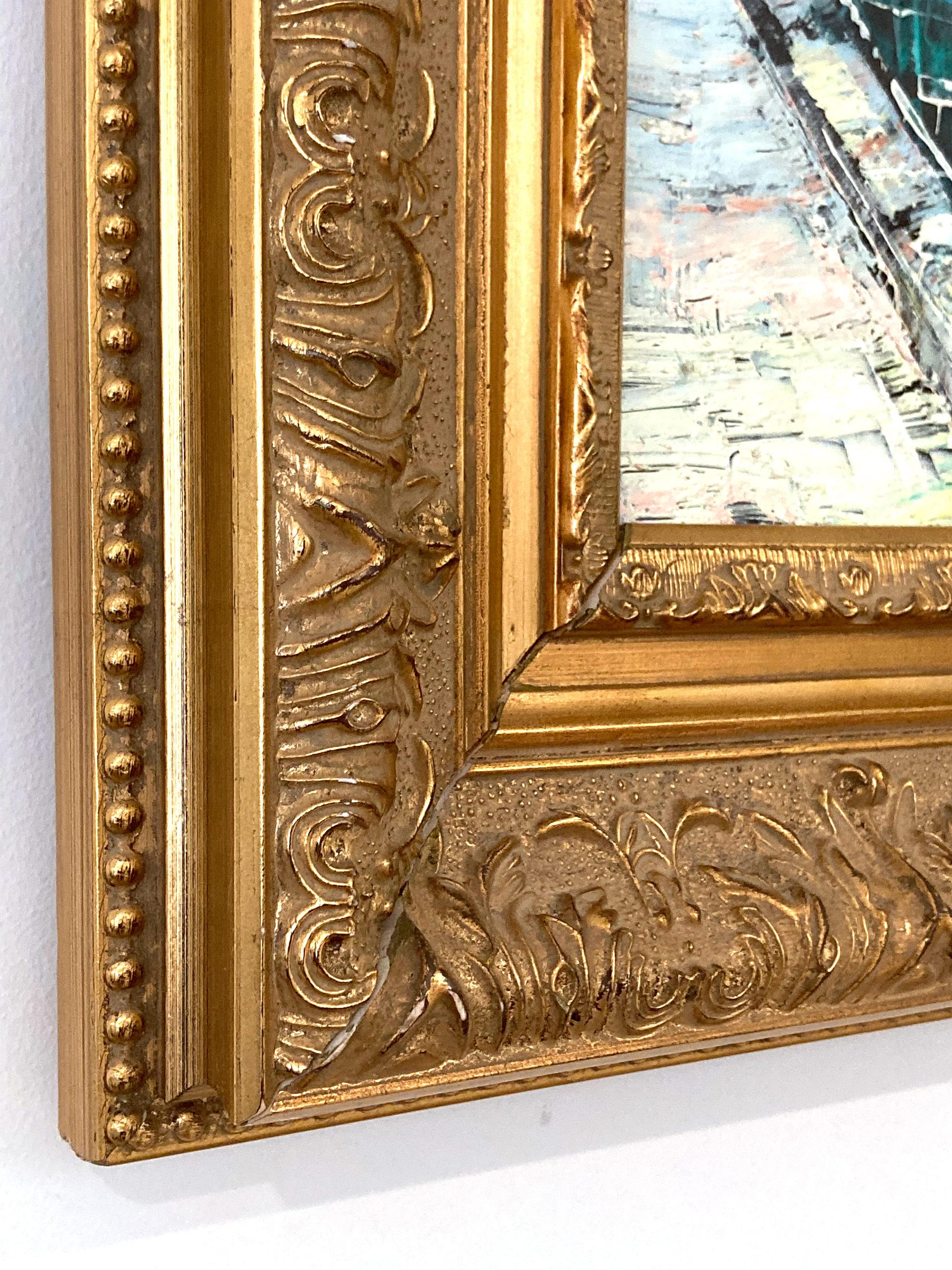 As a French Impressionist artist, most of Harry Deditch Dansky works were produced in the Mid-20th Century. He was known for his vibrant compositions and with a passion to portray life by the sea and city. He also favored rich texturized paintings used mainly with a highly impressionistic manor to execute his subjects. This piece blends a serene seascape with the bustle of port activity—yachts bobbing gently against azure waters, terracotta rooftops glowing under the Mediterranean sun, and the subtle play of shadows on weathered stone. A quintessential piece, Le Port de Saint-Tropez, exemplifies his style: a panoramic oil on canvas that immerses viewers in the timeless allure of this iconic fishing village turned jet-set haven. This piece is signed by the artist lower left and it comes housed in wood carved frame with hanging wire on verso ready to be displayed.