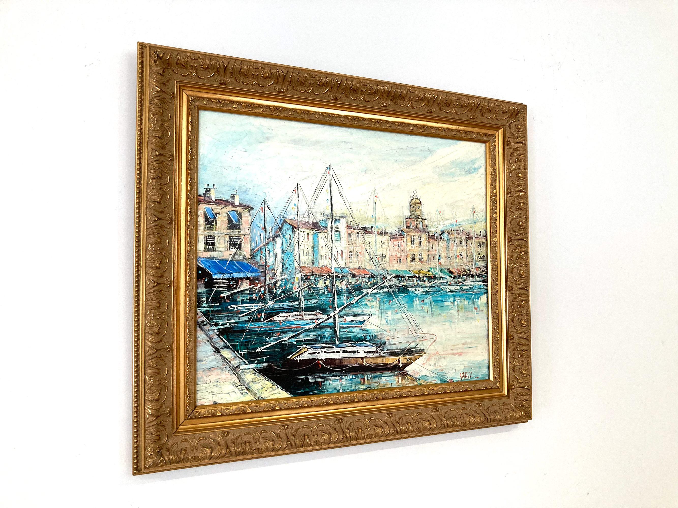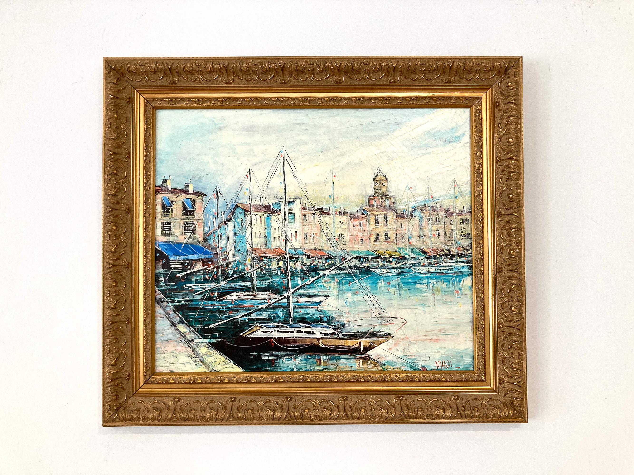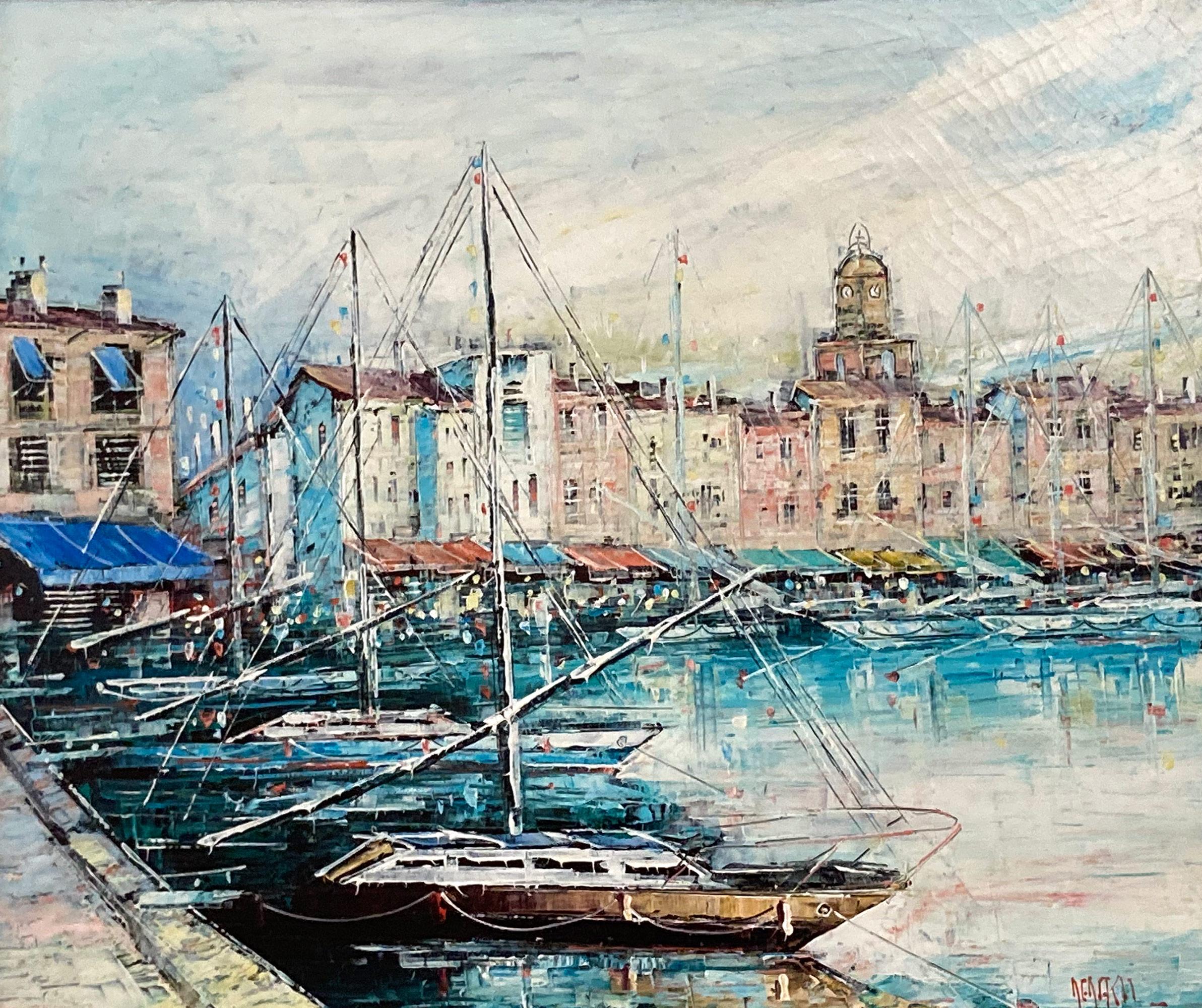 Harry Deditch Dansky"Le Port de Saint-Tropez" Harbor Scene Impressionist Oil Painting on CanvasMid-20th Century