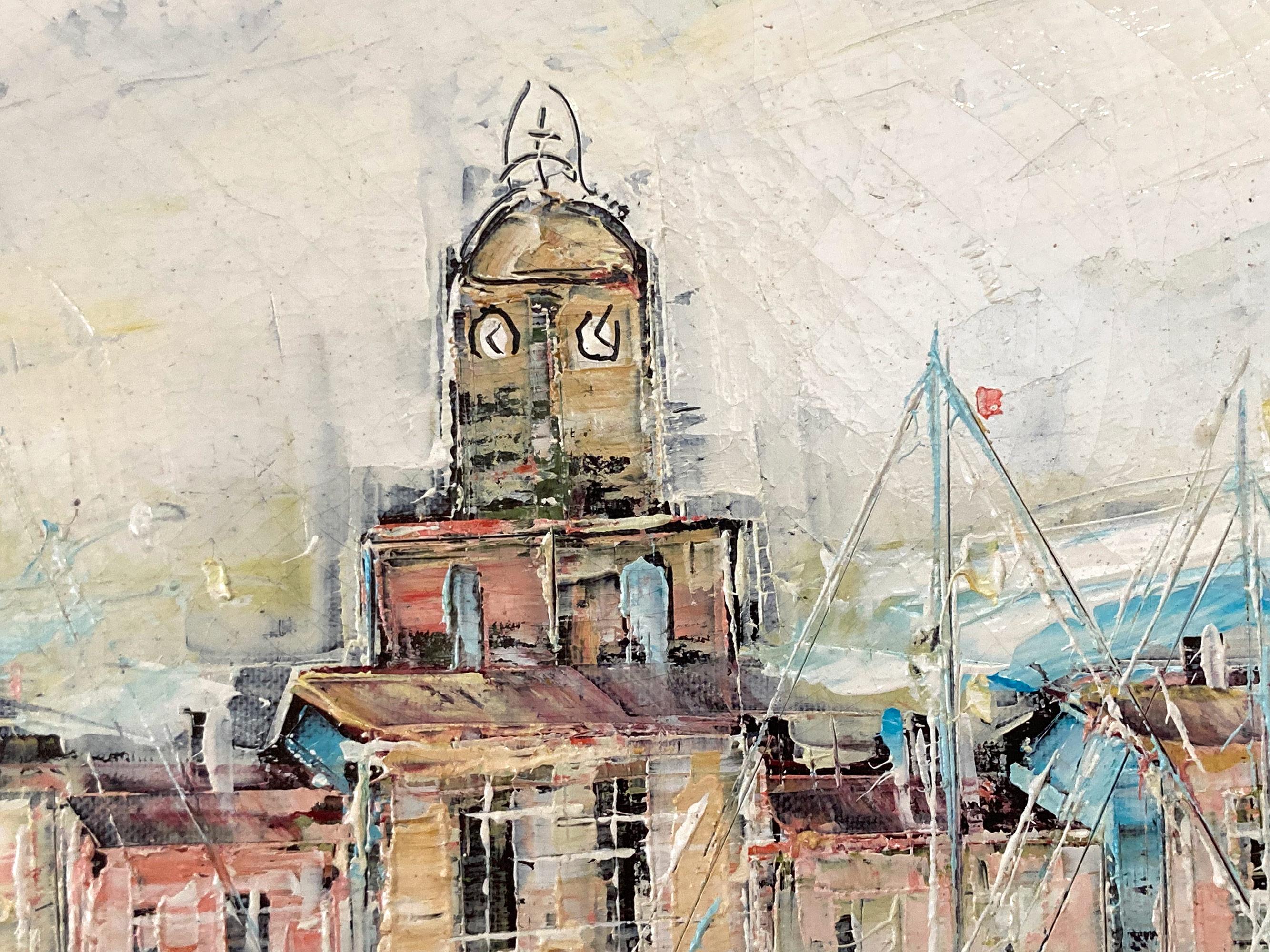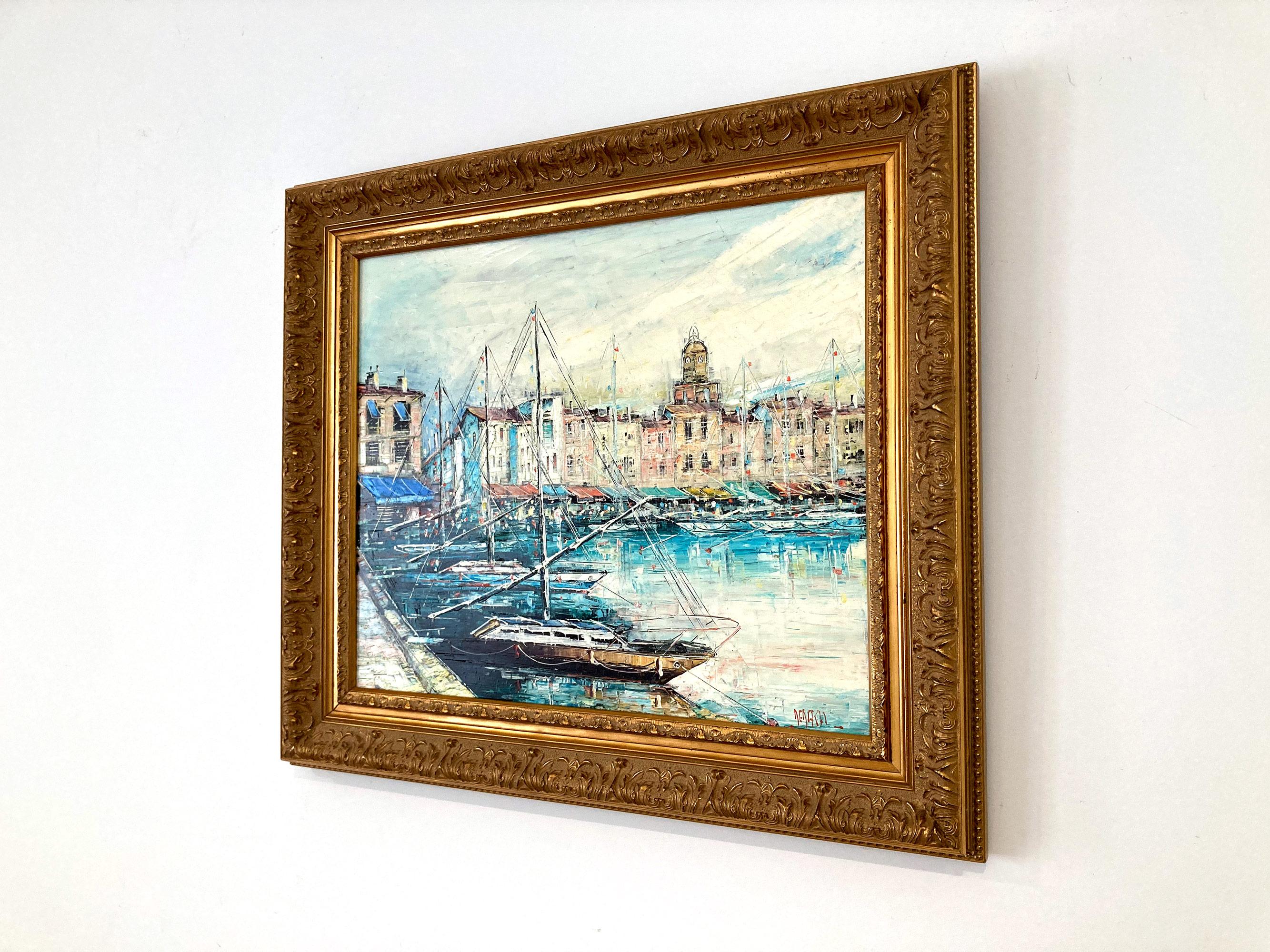 St Tropez Harbour Mid 20th Century French Post Impressionist Signed Oil Painting