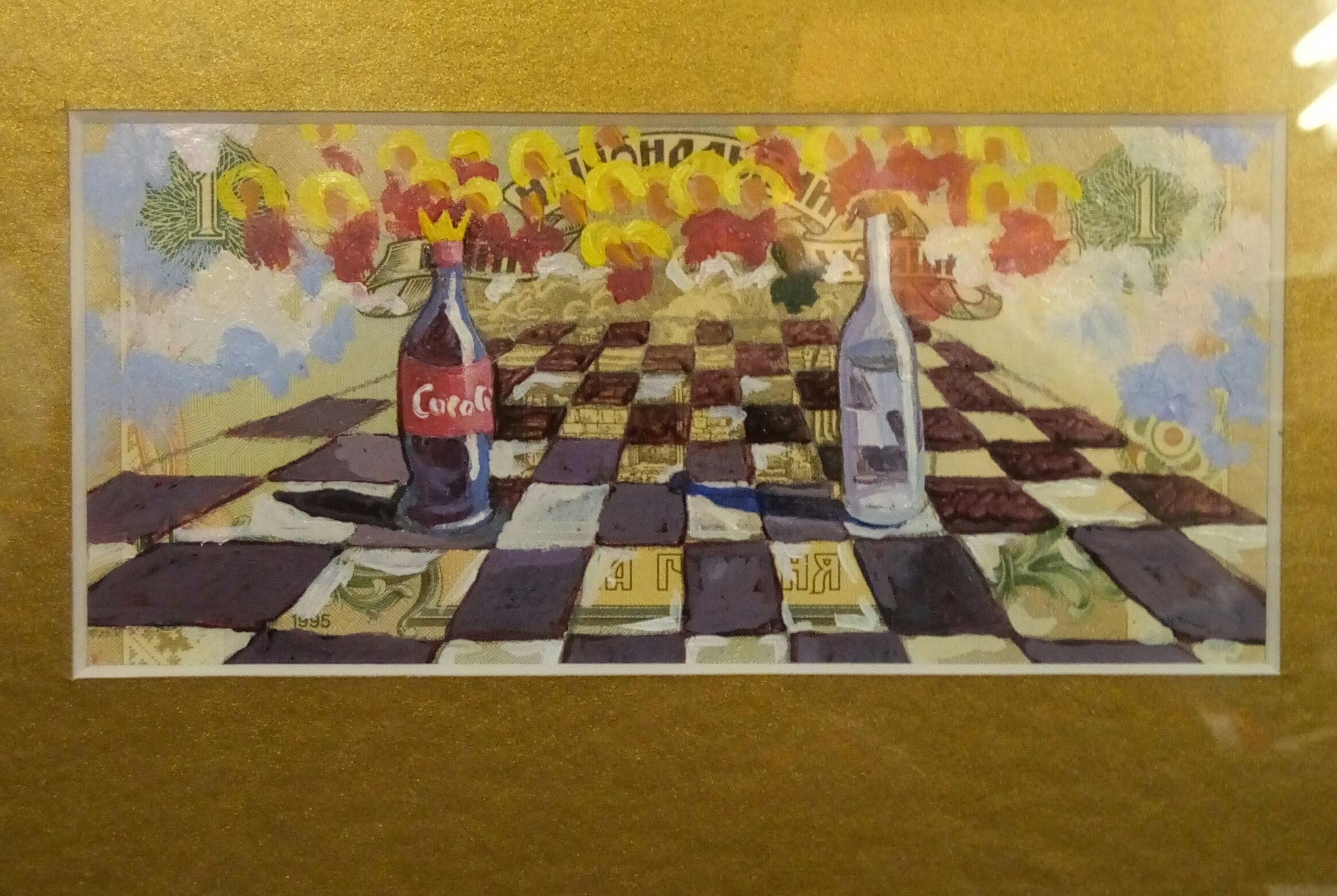 Chess, Coca-Cola, vodka, game of the gods, battle, war, angels, little green men, angel of war, religion, faith, prophecy, philosophy, Salvador Dalí, René Magritte, Ukraine, Ukrainian hryvnia, money, Ukrainian art, Ukrainian landscape, paintings on money.