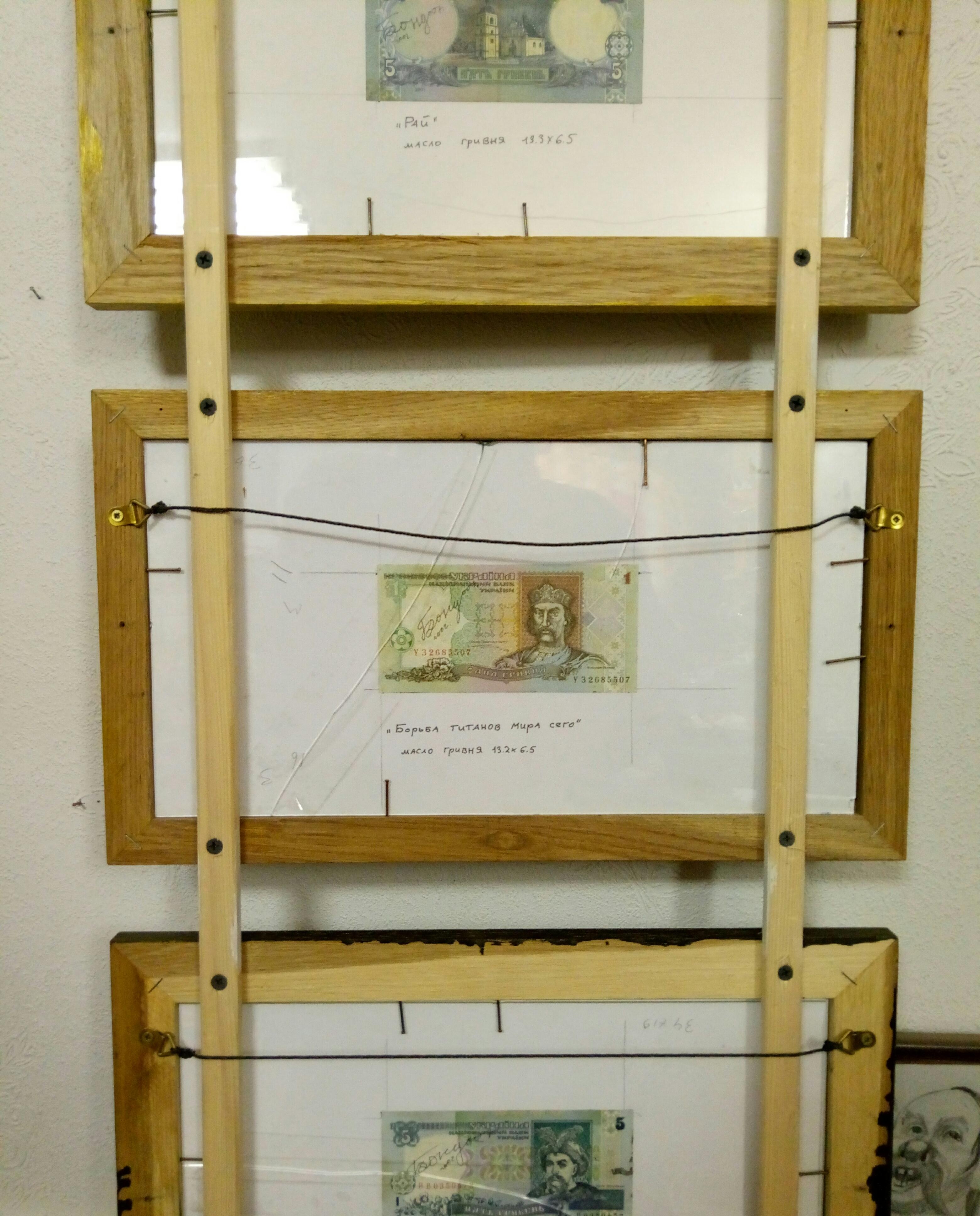 The painting is depicted on a Ukrainian banknote. The frame is made of oak and plexiglass.
