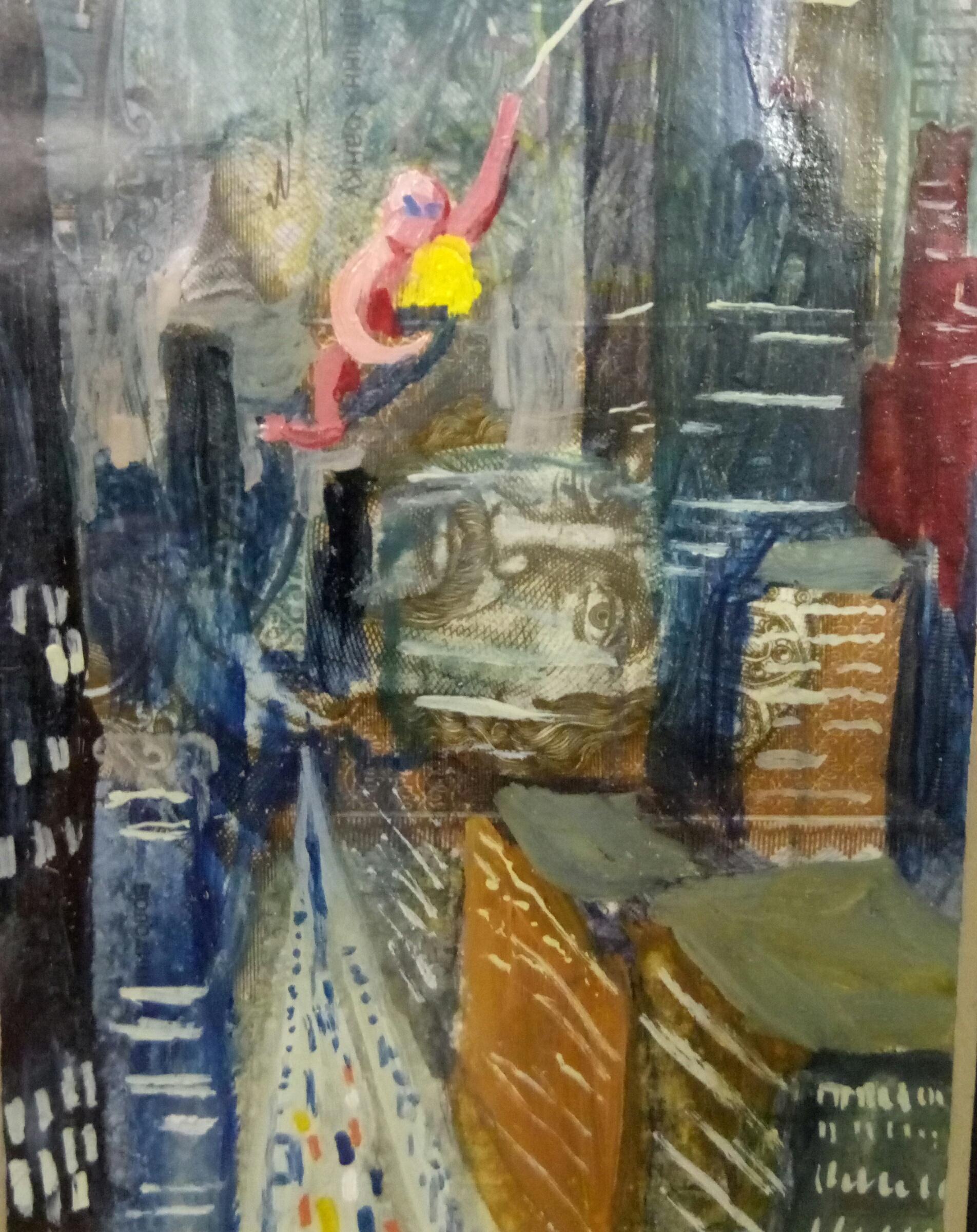 In this painting, I conveyed the superhero's emotions through the lens of paint.