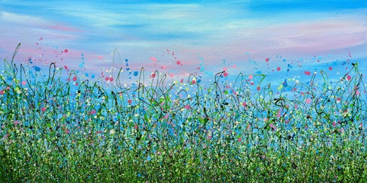 From Now To Eternity - An Original semi-abstract painting by Lucy Moore. Using her signature string grass technique Lucy has created a semi-abstract twist to her classic meadow paintings. This piece would brighten any home or office, bring a little of the outside inside.