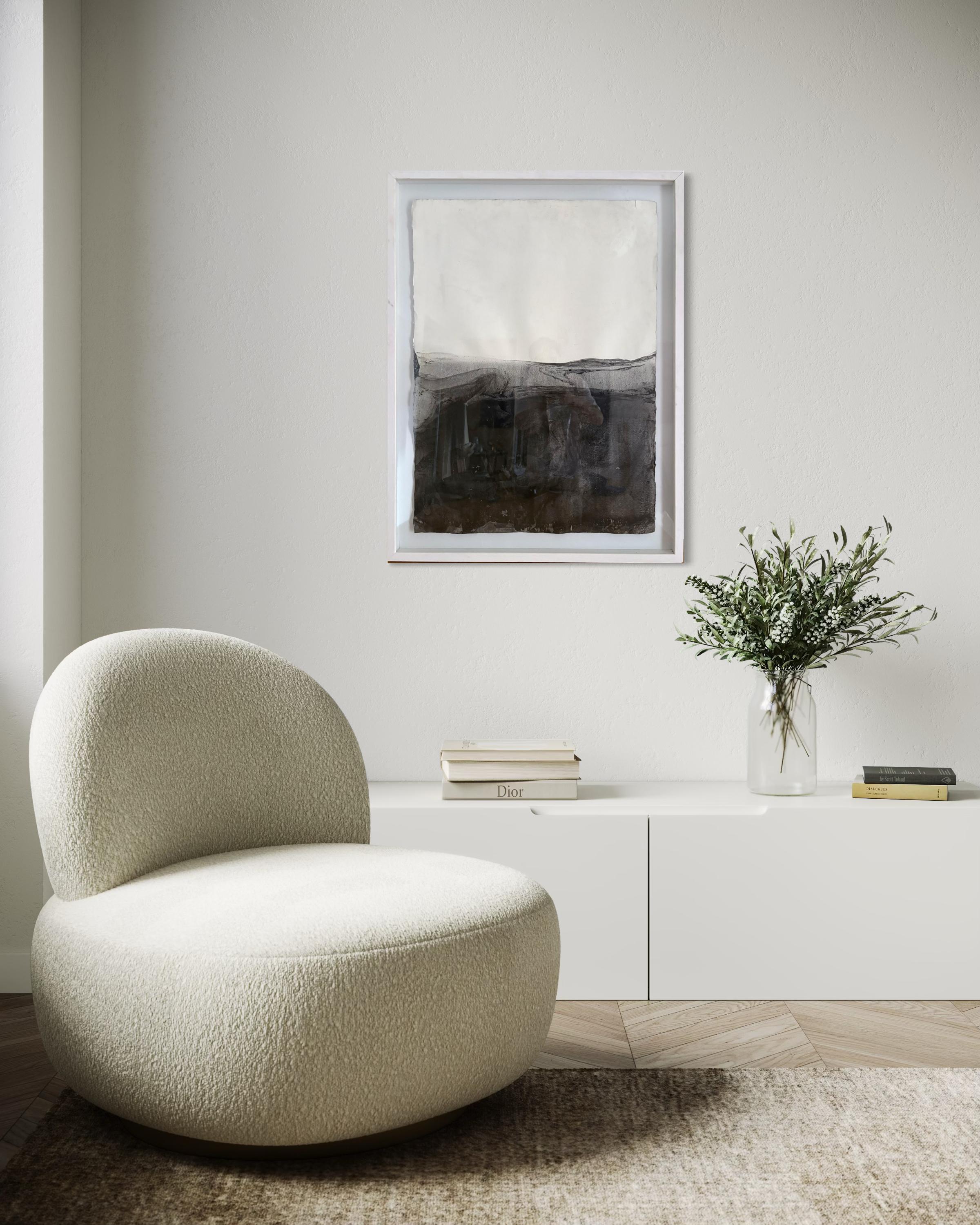 The artwork's textured forms evoke an abstracted natural landscape, blurring the lines between reality and memory. Its minimalist aesthetic transforms any space into a Zen-like sanctuary, offering calm and inspiration.