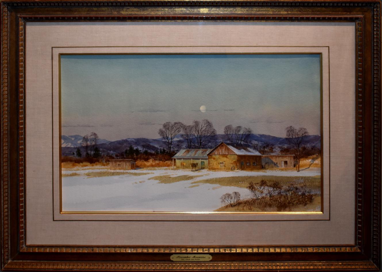 Paul Strisik"NOVEMBER MOONRISE" WATERCOLOR RANCH SCENECirca 1980s