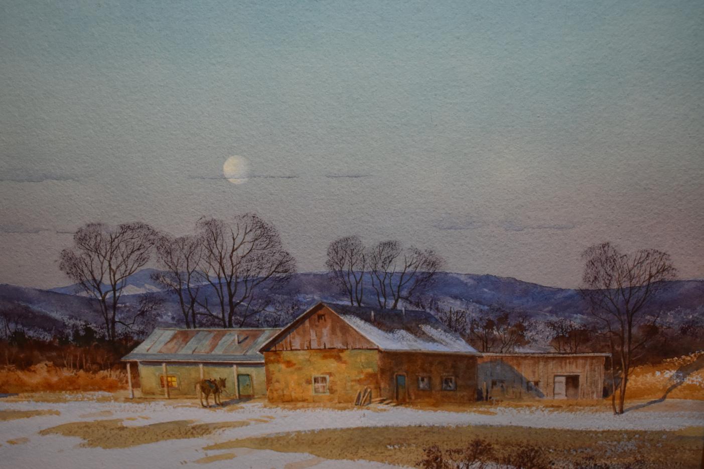 Items Similar to "NOVEMBER MOONRISE" WATERCOLOR RANCH SCENE