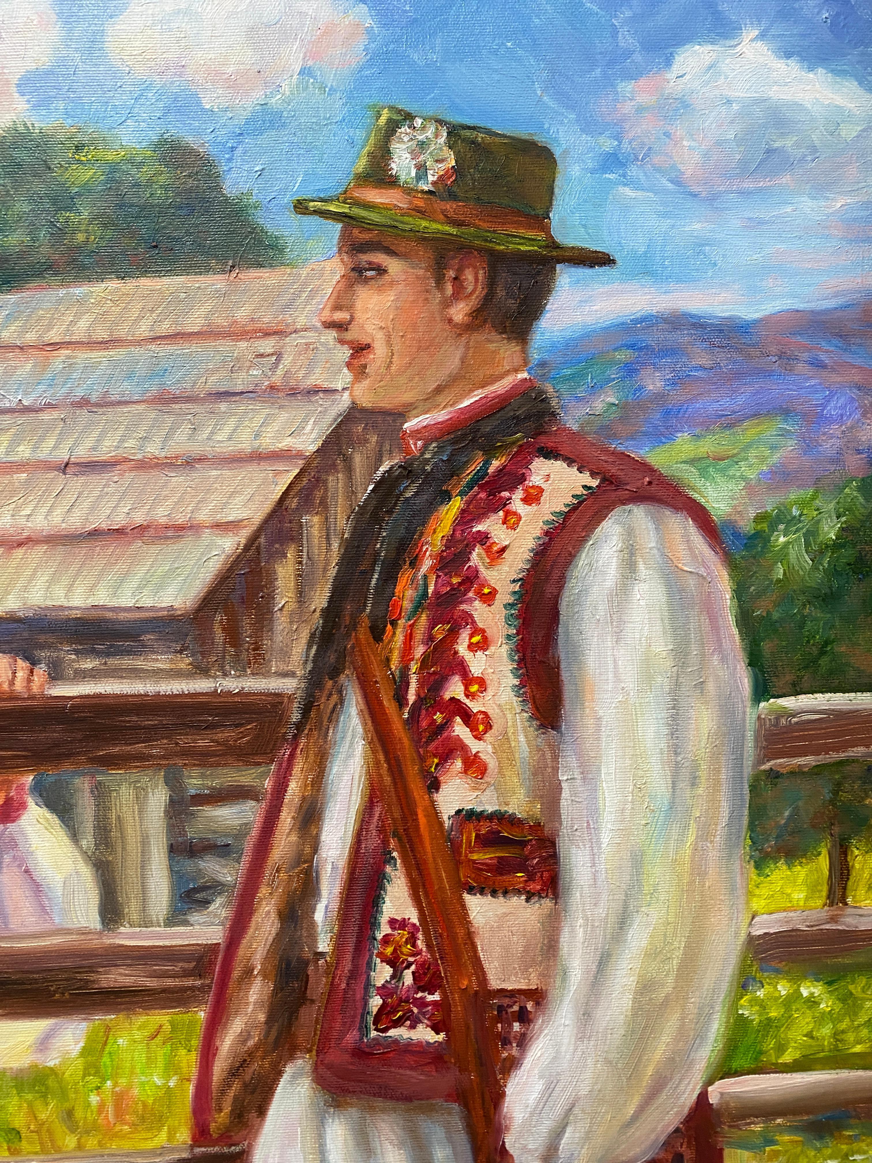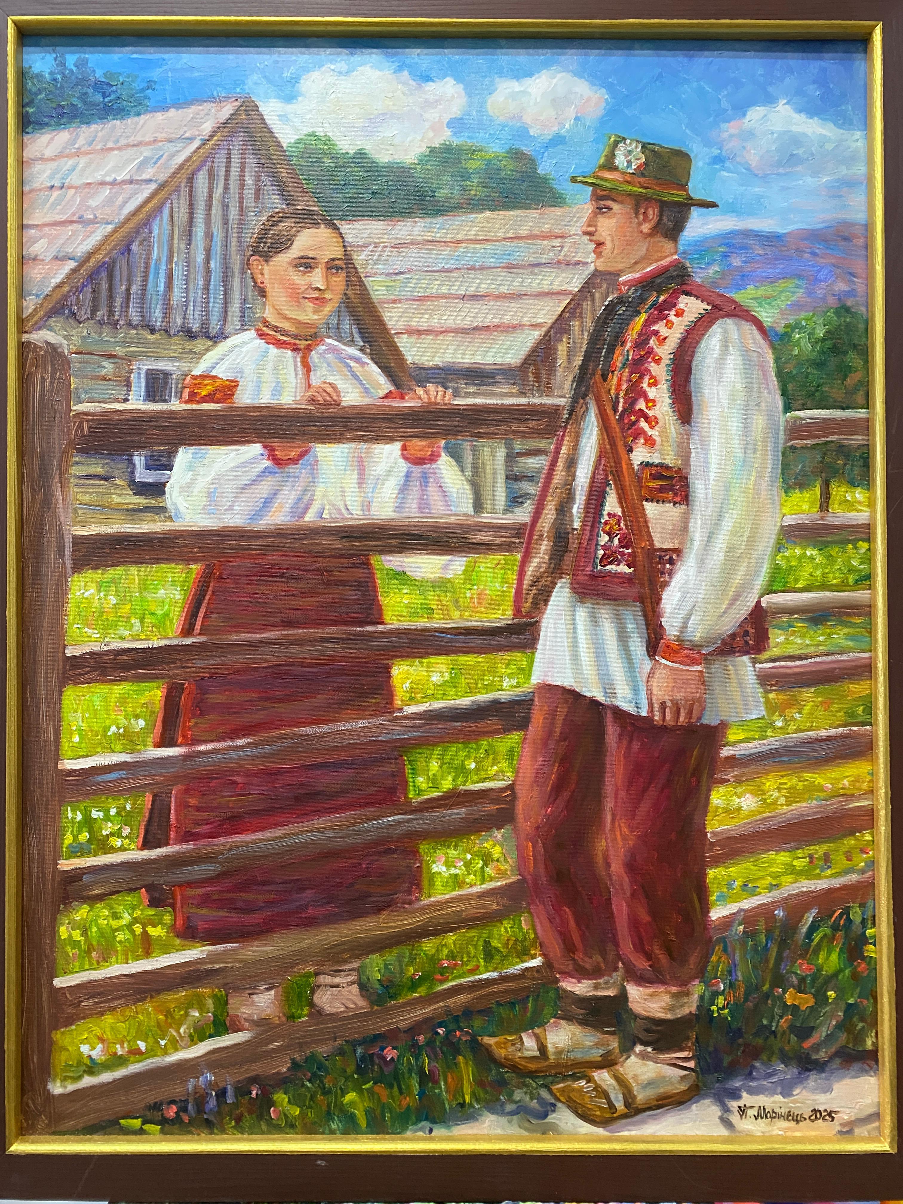 A painting that conveys the mood of a young Hutsul couple's meeting. The artist captured a moment in life.