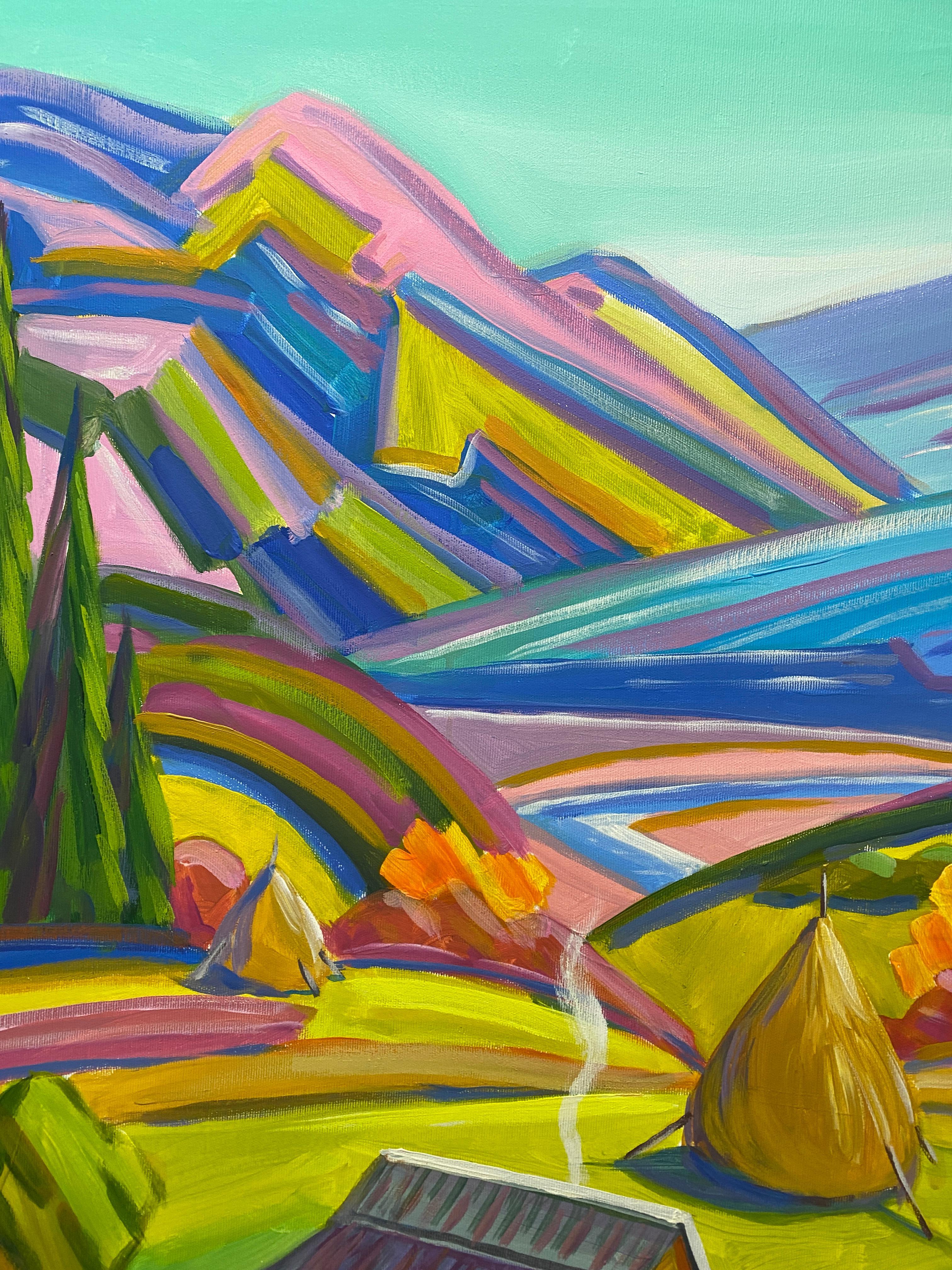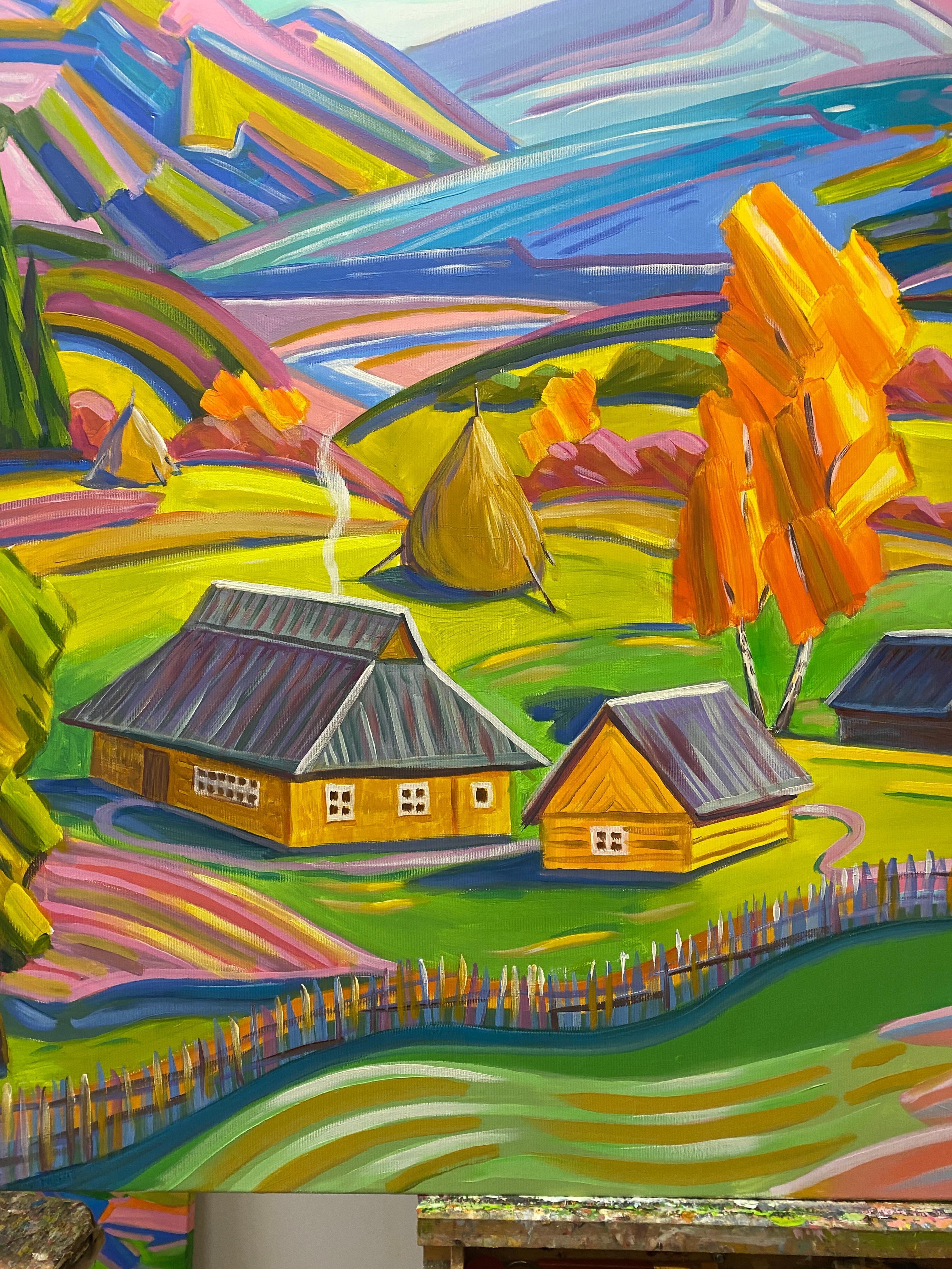 Karina, which conveys the spirit of a Carpathian village. The work was created in the author's style, which appeared in 2015.