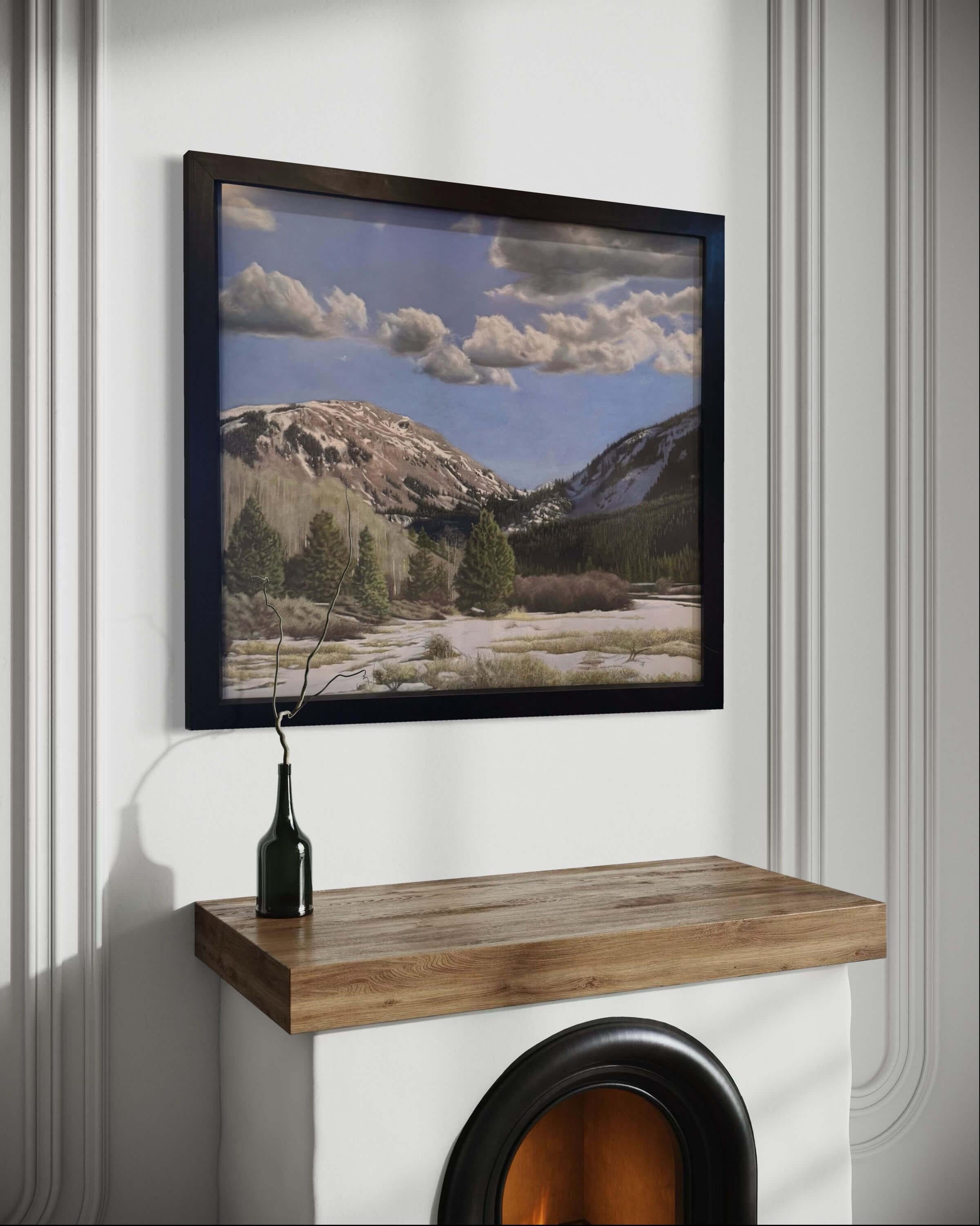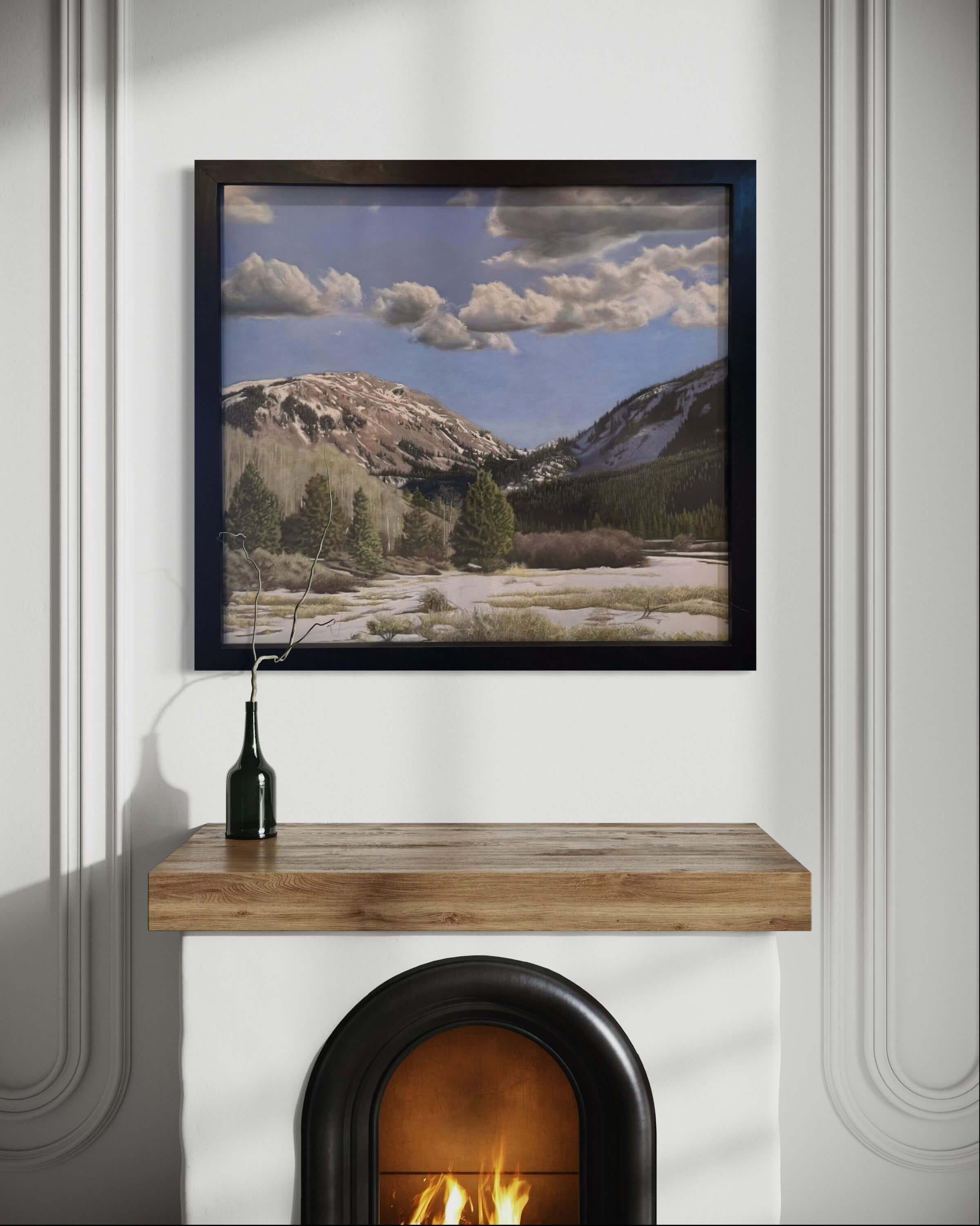 "Booth Lake Trail-Vail Colorado" by Sharon Pomales Tousey is an original, handmade soft pastel painting on wood panel that measures 44 x 48 inches framed and is ready to hang.