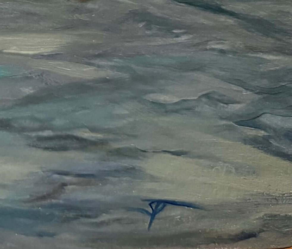"Casting on the South Platte" by Sharon Pomales Tousey is an original, handmade oil painting on an aluminum panel that measures 12 x 14 inches framed and is ready to hang.