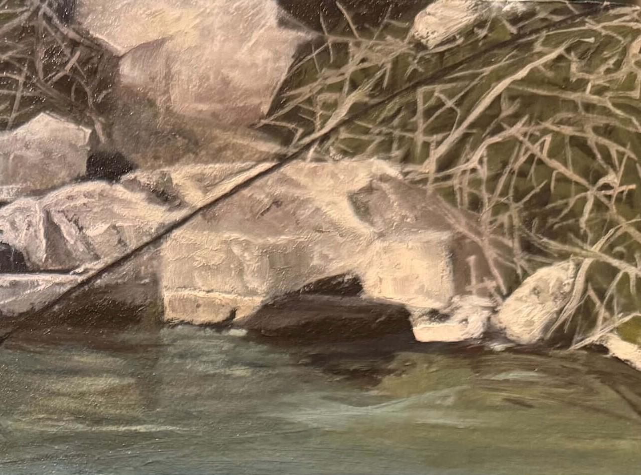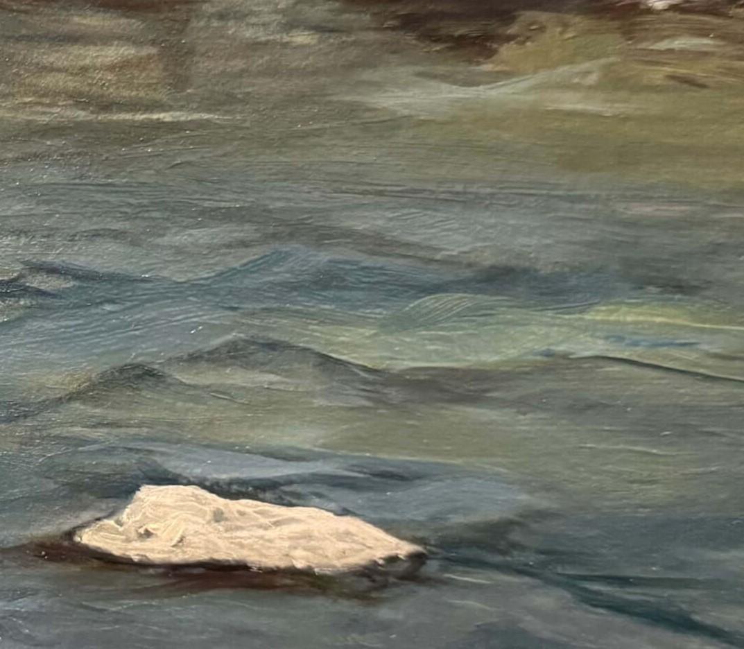 "Rushing Water" by Diego Glazer is an original oil painting depicting a rushing river.