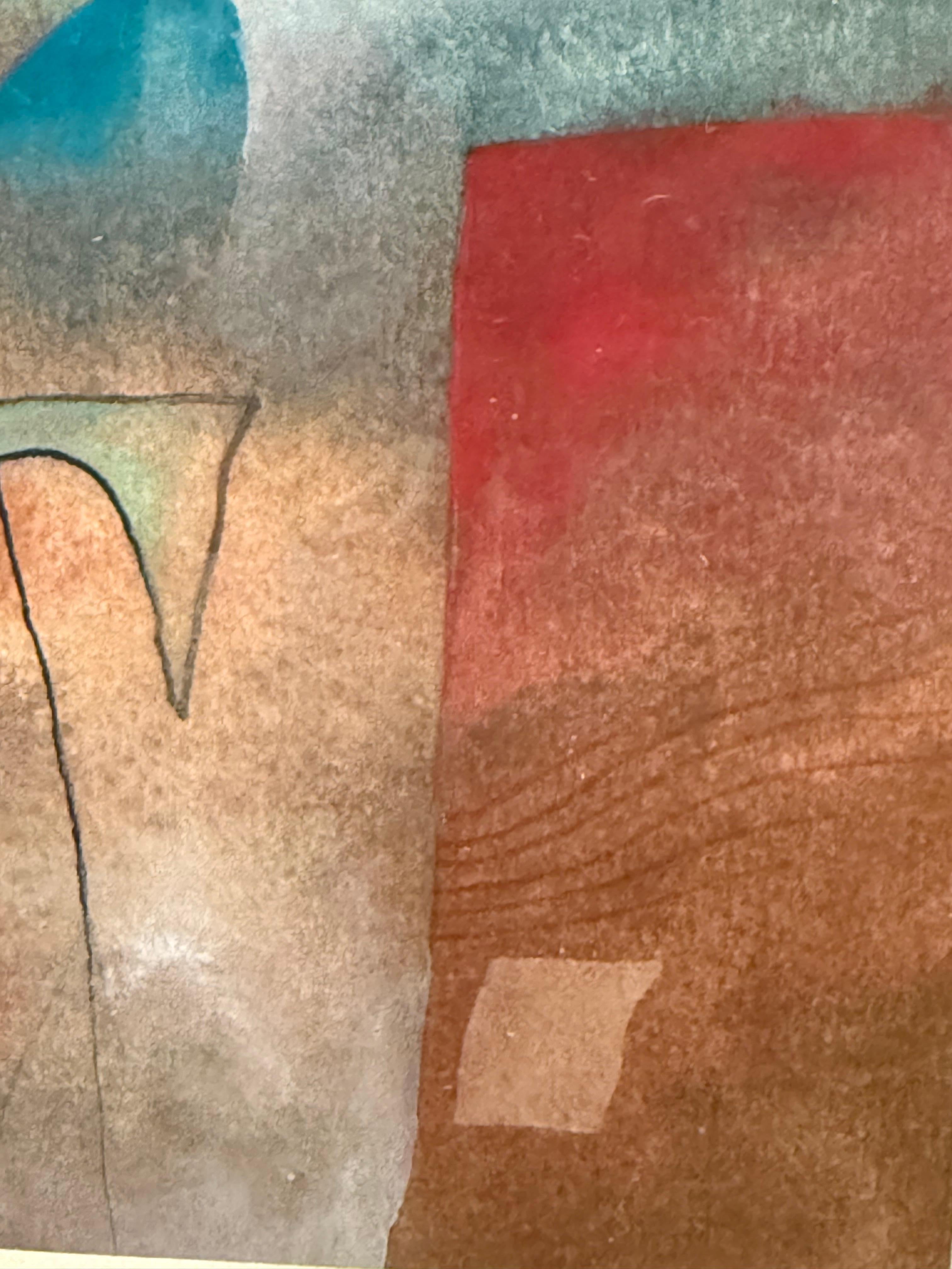 Compact in scale yet expansive in feeling, this watercolor rewards close looking. Its delicate layering of line and wash makes it ideal for collectors of modernist abstraction or works inspired by the surrealist legacy.