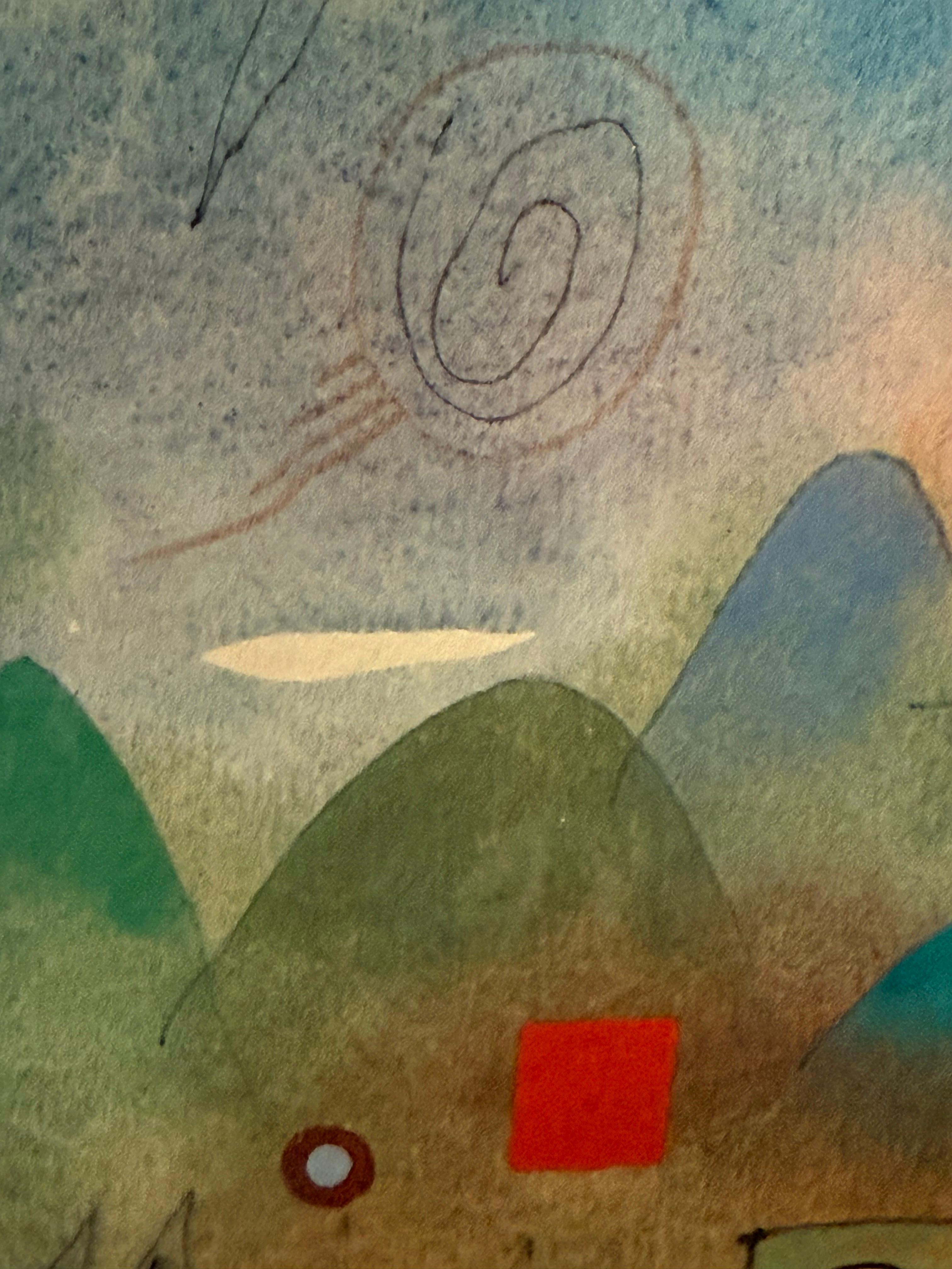 The work captures the spirit of Paul Klee’s poetic vocabulary, where color is atmosphere and shapes emerge as fragments of memory. The piece evokes a sense of floating between worlds: terrestrial and cosmic, structured and improvisational.