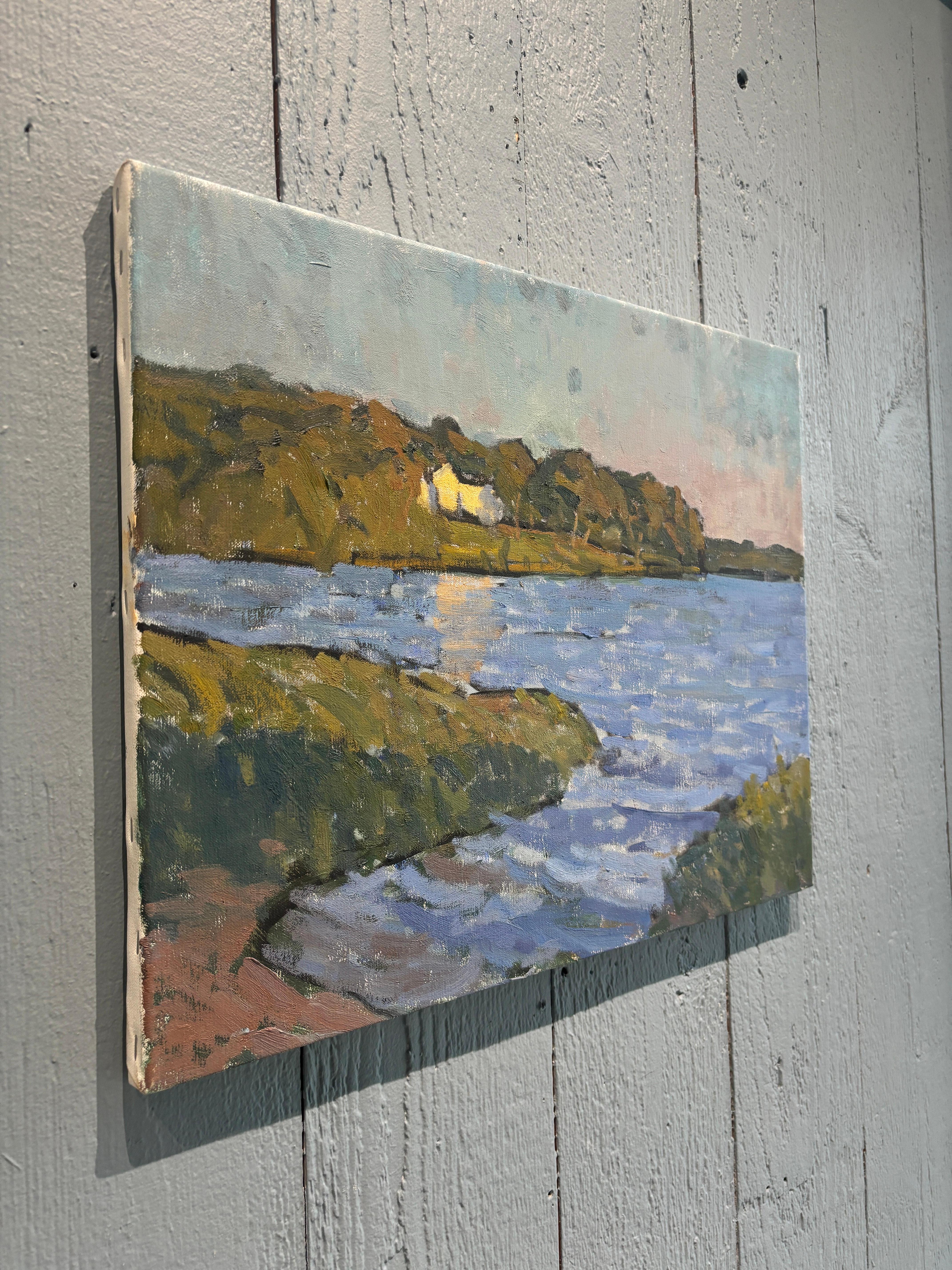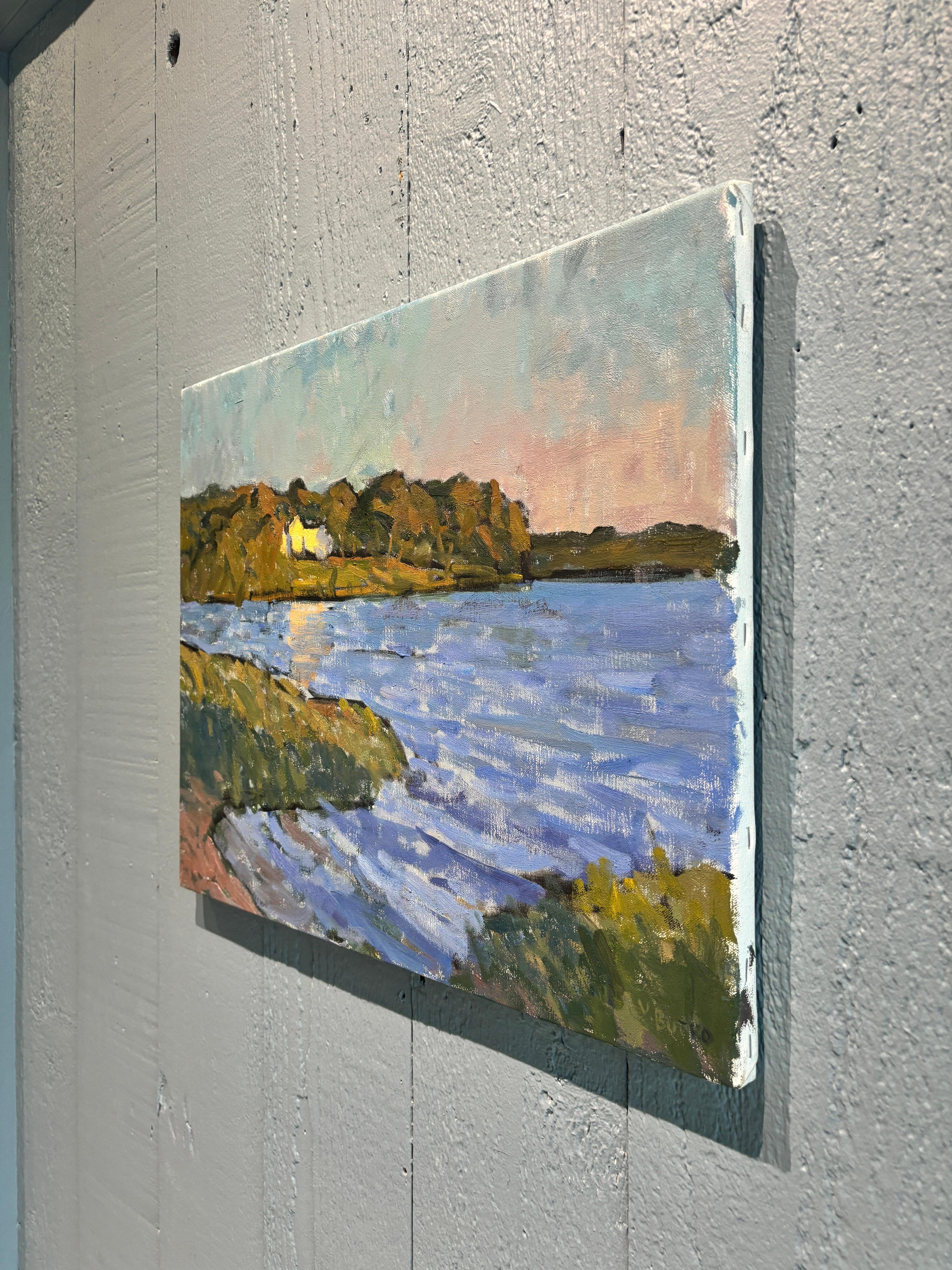 Viktor Butko"Coecles Harbor, Golden Hour" Oil painting, impressionistic seascape with house2024