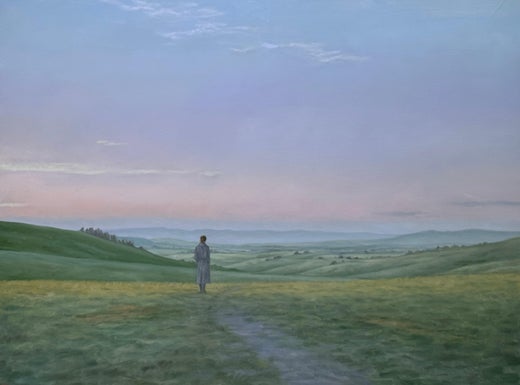 Iconic Willard Dixon beach scene showcasing a road leading to shacks situated at the ocean's edge that are bathed in early evening light. The calm and breathtaking ocean-scape depicts the charming town of Mendocino, which is north of San Francisco. Dixon is one of the finest American contemporary realist painters who has painted western landscapes for 35 years. His work captures the undeniable beauty of the West with its grand and humble spirit. Dixon’s work can be found in numerous distinctive private and public collections, as well as the San Francisco Museum of Modern Art (SFMoMA), and the Metropolitan Museum of Art in NY, as well as the Oakland Museum of California and numerous others.