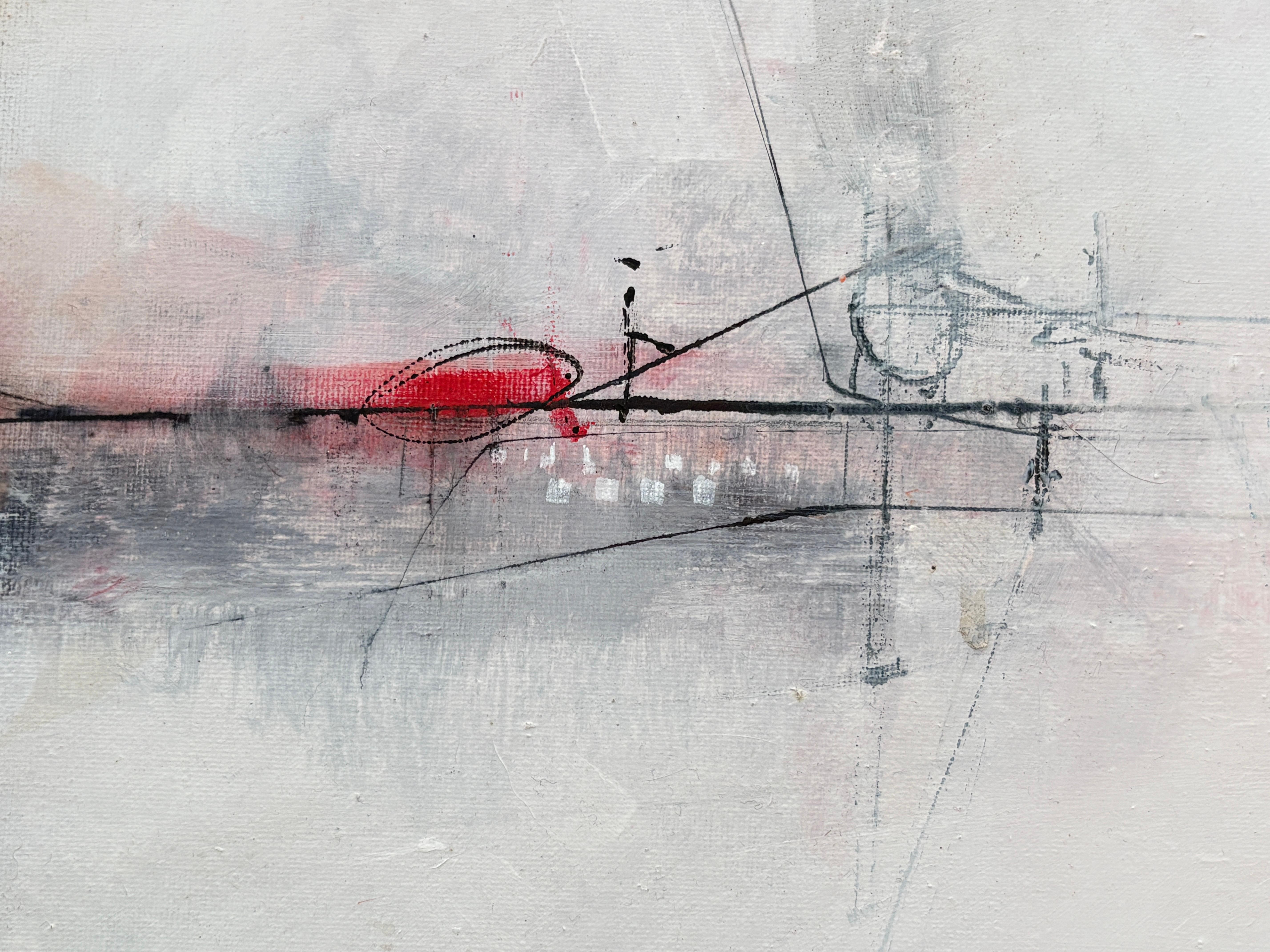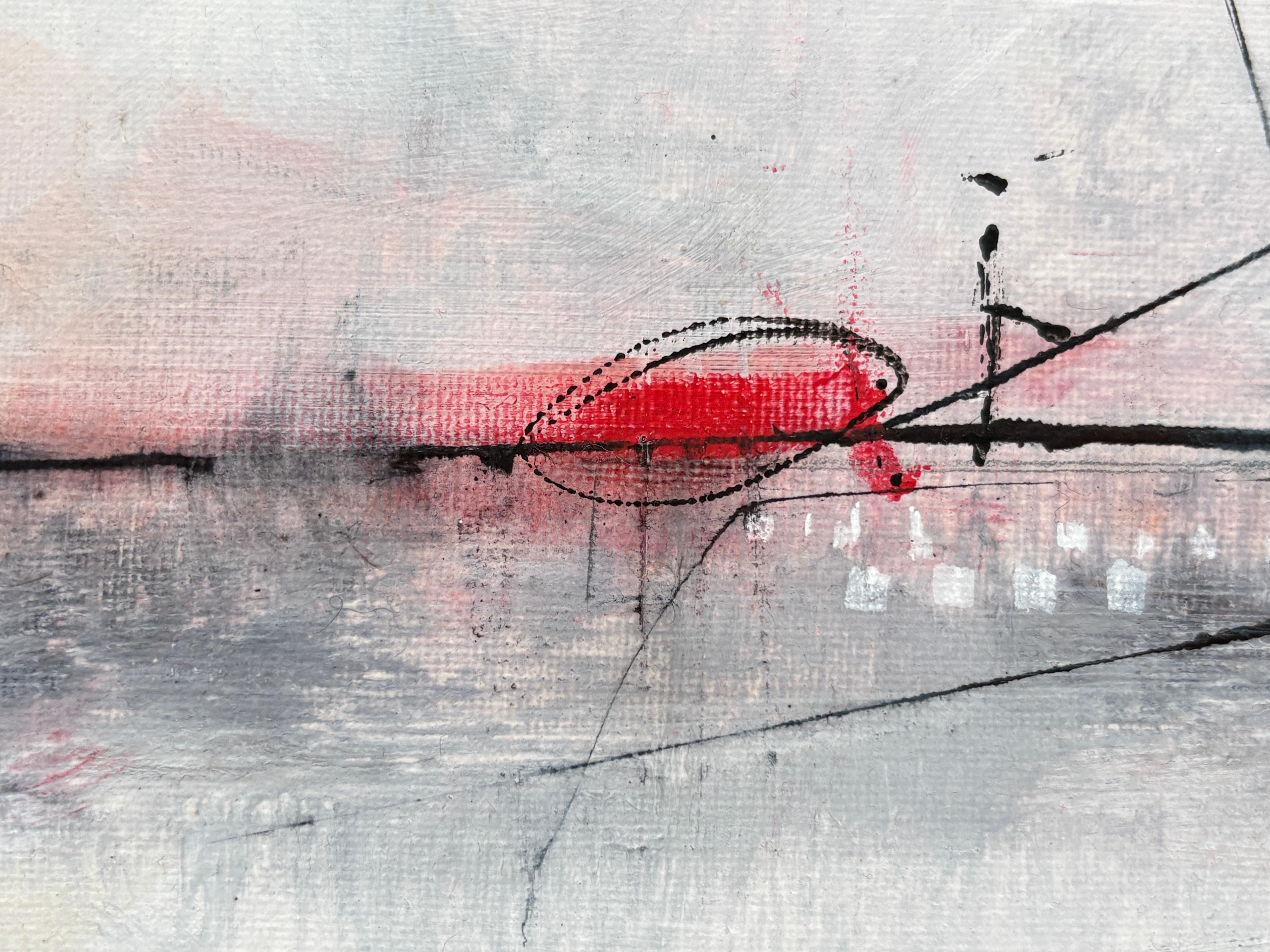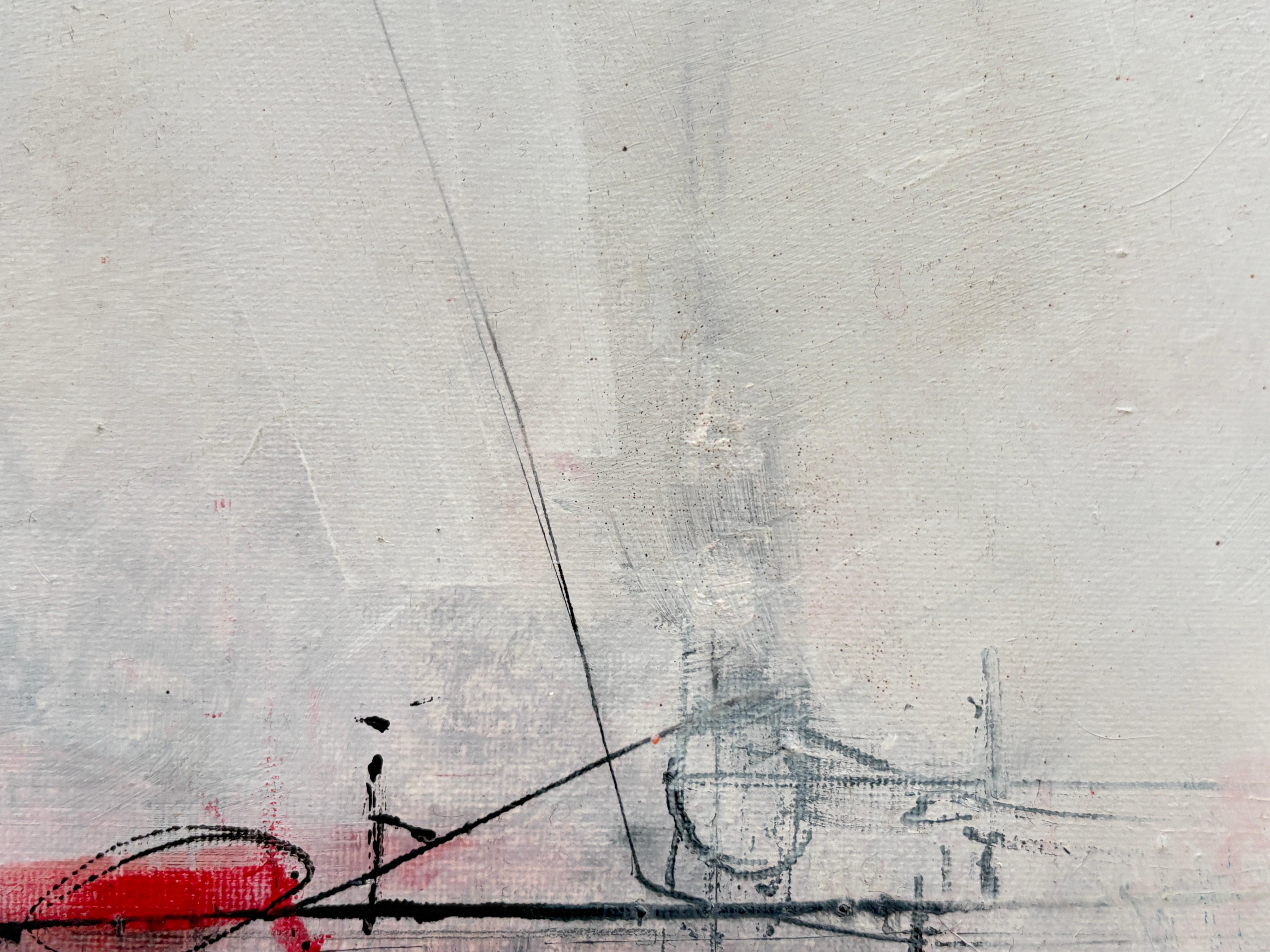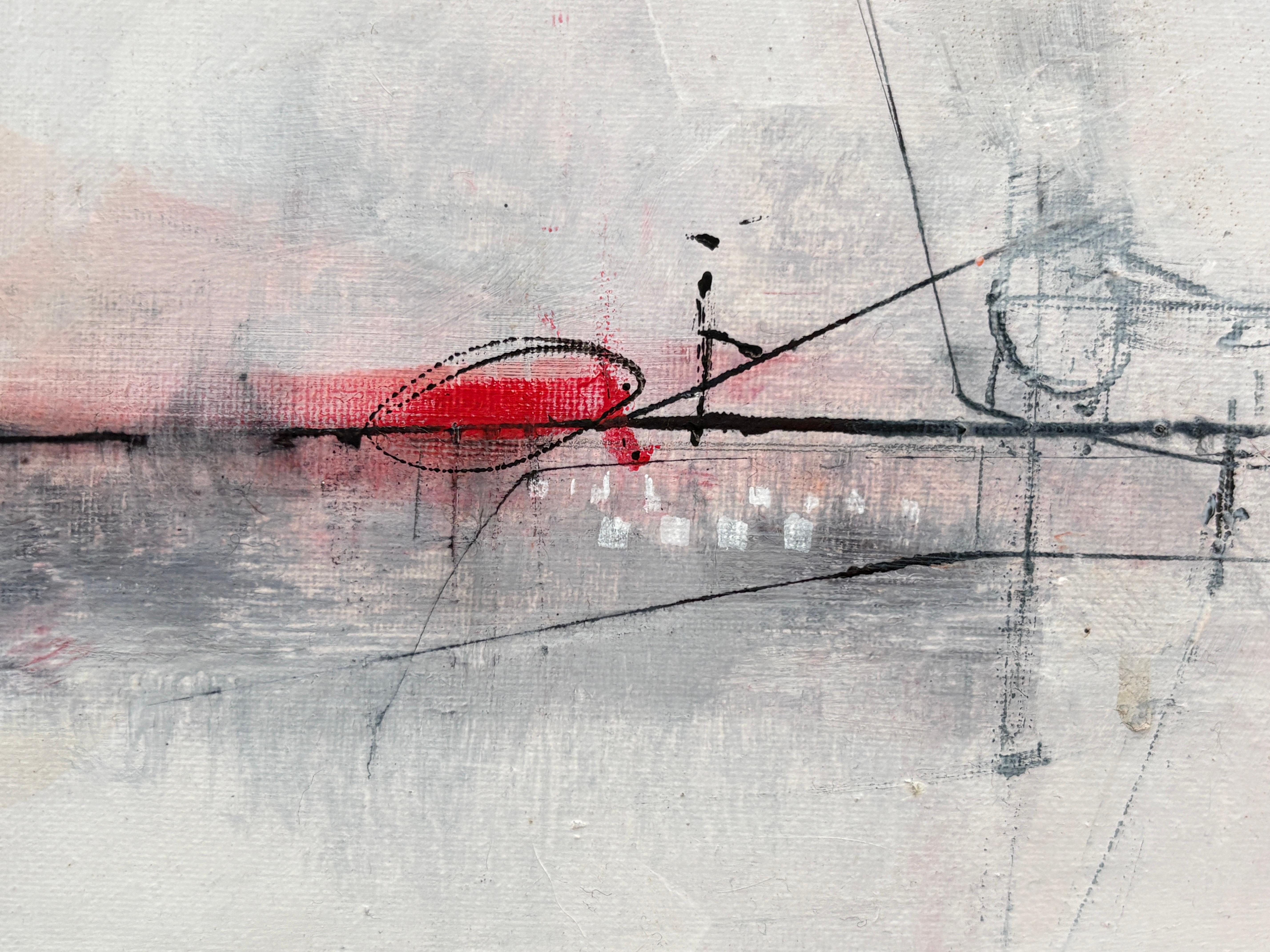 Items Similar to "Misty Bridge" - Modern Layered Minimal Abstract Landscape in White and Red Oil