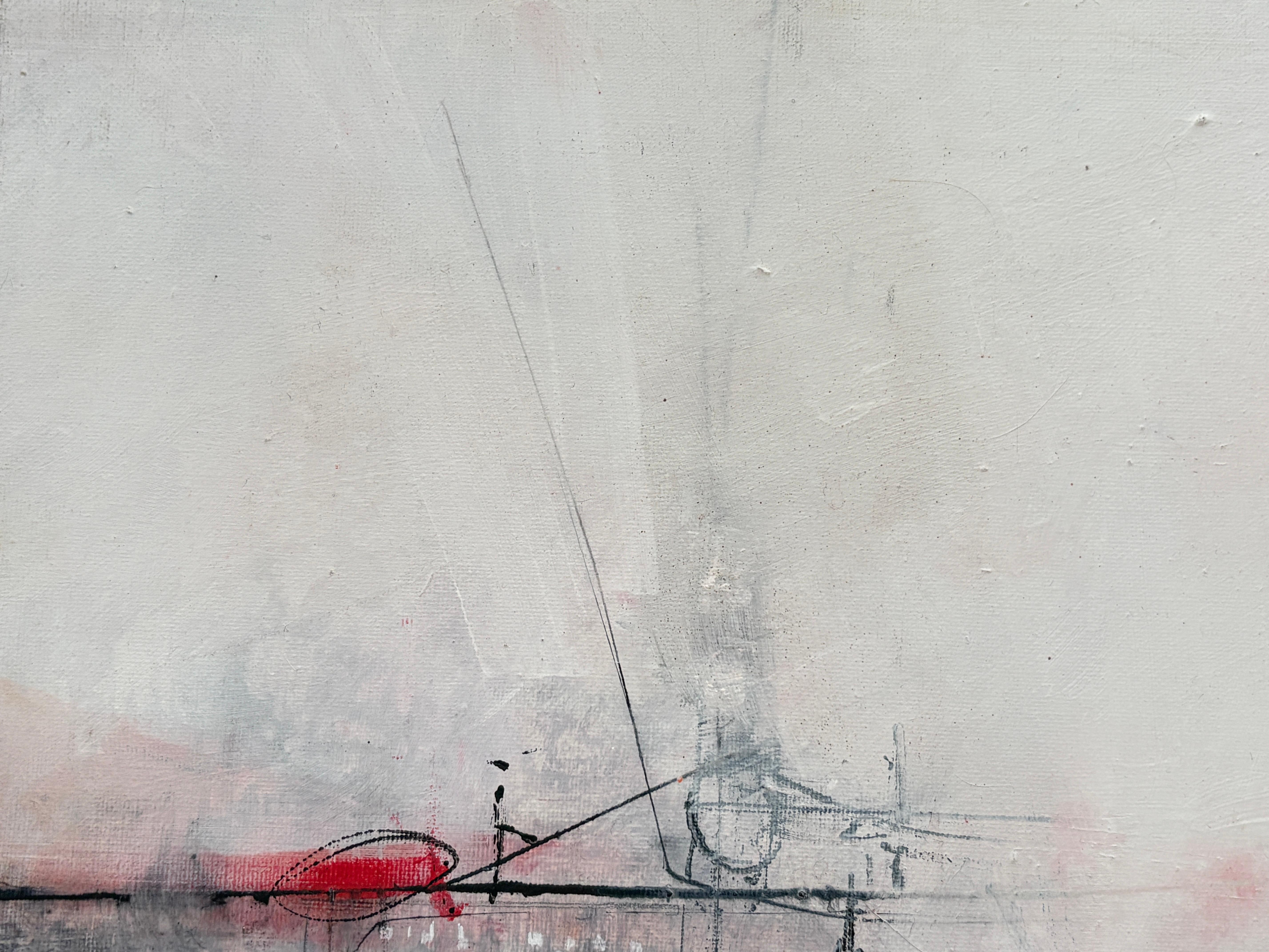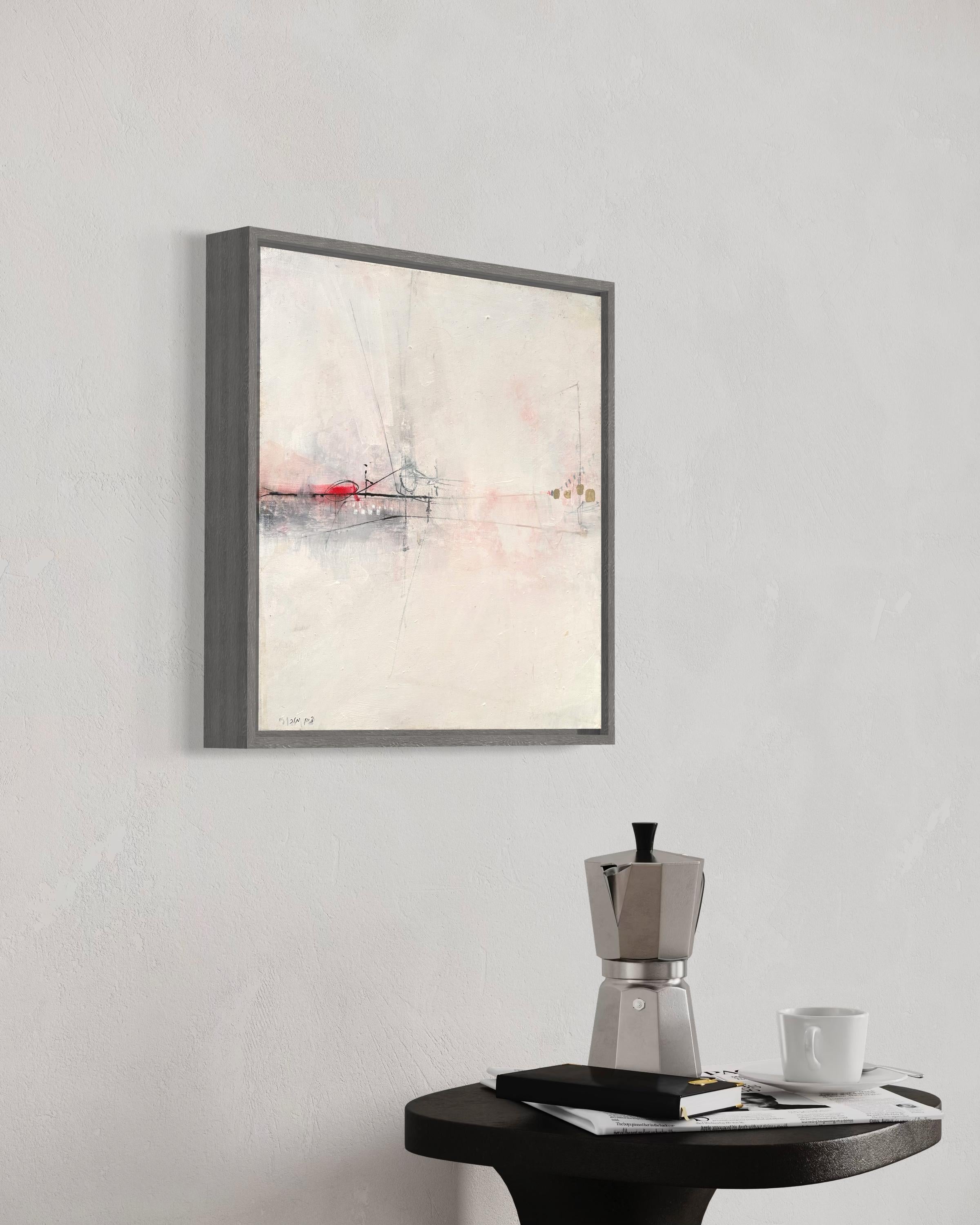 Zion Mor"Misty Bridge" - Modern Layered Minimal Abstract Landscape in White and Red Oil2021