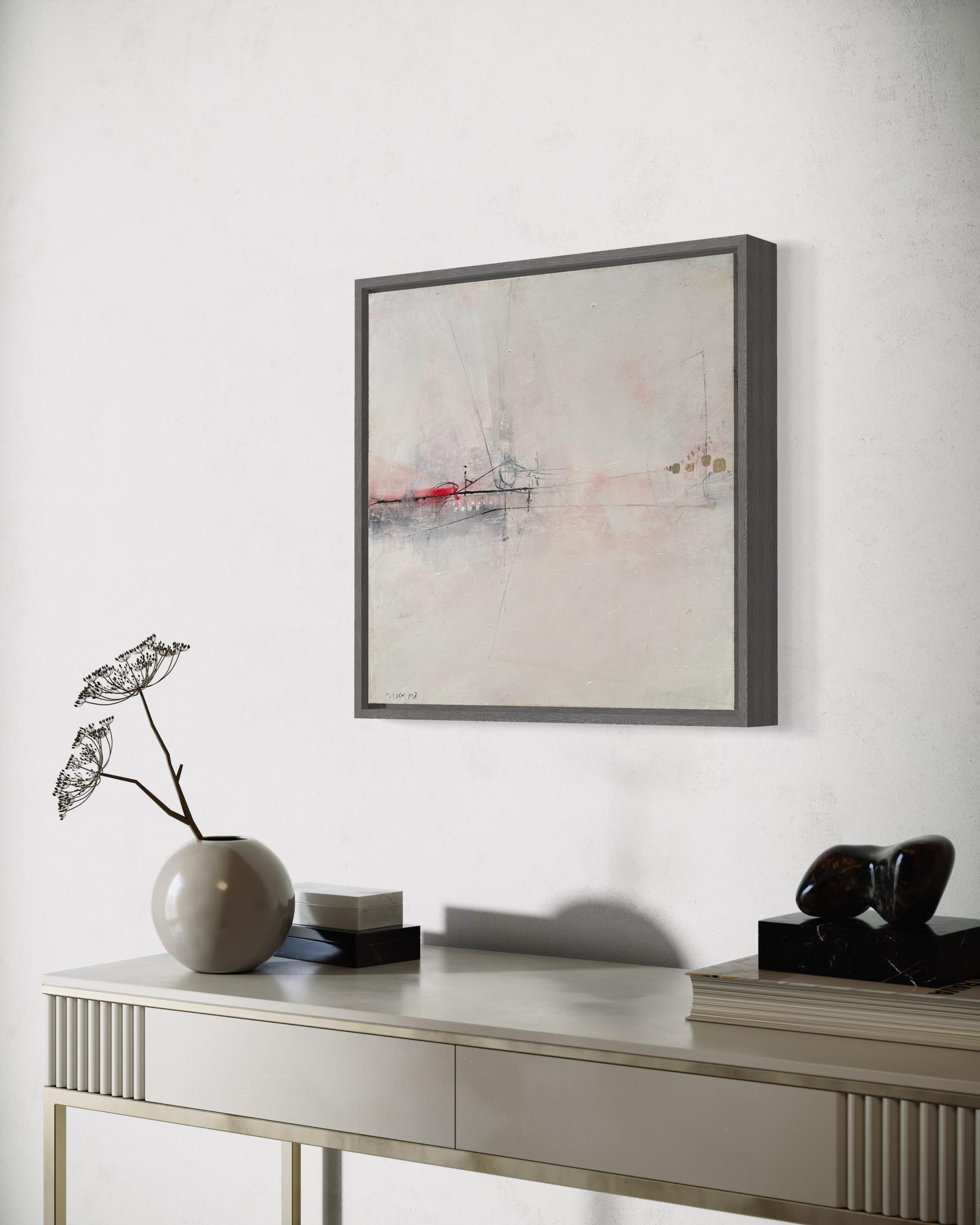 "Antique White/Red", No.1347, Abstract Painting, 21st Century, Acrylic Clay