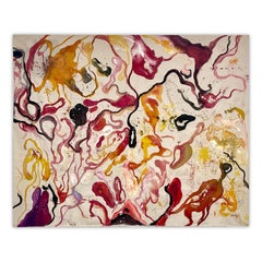 This large affordable one-of-a-kind 42 inch high by 66 inch wide and 1.5 inch deep artwork is a mixed media composition on canvas. It is stretched, wired, and ready to hang. This large abstract painting is signed by the artist on the front and back of the artwork. The sides are painted and it does not require framing. Free local Los Angeles area delivery. Affordable Continental U.S. and worldwide shipping available. Provenance: Artplex Gallery. A certificate of authenticity issued by the art gallery is included. While the artist has chosen to keep the price upon request, this captivating piece embodies both sophistication and exceptional value.
