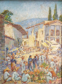 1930s Mexican City Scene by Chicago Artist Francis Chapin, City Plaza, Guaymas
