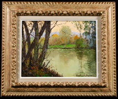 A painter of realistic landscapes reflecting a vanishing wilderness in America, Robert Wood (not to be confused with Robert E. Wood) is reportedly one of the most mass-produced artists in the United States. His painting became so popular he was unable to meet all of the demands, and many of his works were reproduced in lithographs and mass distributed as prints, place mats, and wall murals by companies including Sears, Roebuck. He was born in Sandgate, Kent on the south coast of England near Dover, the son of W.L. Wood, a famous home and church painter who recognized and supported his son's talent. In fact, he forced his son to paint by keeping him inside to paint rather than playing with his friends. At age 12, Wood entered the South Kensington School of Art. As a youth, he came to the United States in 1910, having served in the Royal Army, and he never returned to England. He traveled extensively all over the United States, especially in the West, often in freight cars, and also painted in Mexico and Canada. His itinerant existence took him to Illinois where he worked as a farmhand, to Pensacola, Florida where he married, briefly in Ohio, Seattle, Washington, and Portland, Oregon. In 1912, he was in Los Angeles, and in the late 1920s and early 1930s, in San Antonio, Texas, where he lived and in 1928 exhibited in the "Texas Wildflower Competition." From San Antonio, he gained a national reputation for his strong colored, dramatic paintings. Some of that prestige has been credited to his association with Jose Arpa, prominent Texas artist. Wood also gave art lessons, and one of his students was Porfirio Salinas. During this period, Wood sometimes signed his paintings G. Day or Trebor, which is Robert spelled backwards. In 1941 he went to California and painted numerous desert and mountain landscapes and coastal scenes. He lived in Carmel for seven years, and then moved to Woodstock, New York, but he soon returned to California, settling first in Laguna Beach, then San Diego, and finally in the High Sierras, where he and his wife built a home and studio near Bishop and lived until his death in 1979. Robert Wood was born March 4, 1889, in Sandgate, England, a small town on the Kentish coast not far from the white cliffs of Dover. His father, W. J. Wood, was a successful painter who recognized Robert's unusual talent. At the age of twelve, his father enrolled Wood in art school in the small town of Folkstone. He then attended the South Kensington School of Art. While attending art school, Wood won four first awards and three second awards, one each year, a record. In 1910 after service in the Royal Army, nineteen-year-old Wood and his friend, Claude Waters, immigrated to America. Initially, he settled in Illinois and worked as a hired hand on a farm belonging to Water's uncle. He would then strike out on his own, living the life of an itinerant painter. Wood traveled as a hobo, hopping freight trains and selling or bartering small paintings to support him along the way. When times were hard, he worked at whatever job was available. In this manner, he saw most of the United States and fell in love with rural America. By 1912, Wood visited Los Angeles for the first time, arriving on the day of the Titanic tragedy. Later that year, he had met, courted and married young Eyssel Del Wagoner in Florida. The couple moved to Ohio where a daughter, Florence, was born. During World War I, the family moved to Seattle where a son, John Robert Wood, was born in 1919. In the early 1920's, the young Wood family was almost constantly on the move. They stayed for short periods in Kansas, Missouri, California and for a longer time in Portland, Oregon, where Wood's friend Claude Waters had settled. Wood's seemingly endless wanderings disrupted his family life and delayed his development as a painter. However, through his travels he developed an appreciation for the American landscape that would inspire him for the rest of his career. Although aware of the current movement away from traditional realism in American art, he elected to travel that solitary path and remain true to his own vision of American’s grandeur and beauty poetically translated through his landscape and seascape paintings. In 1923, the Wood family discovered the beautiful city of San Antonio, Texas and it was there that he and his family would finally settle. He studied briefly at the San Antonio Art School with Spanish colorist Jose Arpa y Perea (1860-1952), who had arrived in San Antonio that same year. In the latter part of the 1920’s, Jose Arpa’s influence quickly became evident. Wood after several years of experimentation was becoming fine easel painter, capable of great subtlety with a new mature original style. Like Texas painters Robert Onderdonk (1853-1917) and his son Julian Onderdonk (1882-1922), Robert Wood concentrated on the distinctive Texas landscape with its Red Oak trees and wildflowers that covered the hill country landscape. He developed a reputation for his scenes of Blue Bluebonnets, the state flower. In the spring, the Texas prairie is covered with wildflowers, especially in the hill country surrounding San Antonio and Austin. Wood incorporated native stone barns and rough wood farmhouses that added authenticity and romance to his compositions. In 1925, Wood was divorced from his wife. In 1932, he moved to the famous scenic loop on San Antonio's outskirts. While still living in Texas, he took extensive western sketching trips that brought him to California. It is evident that his 1930’s California...
