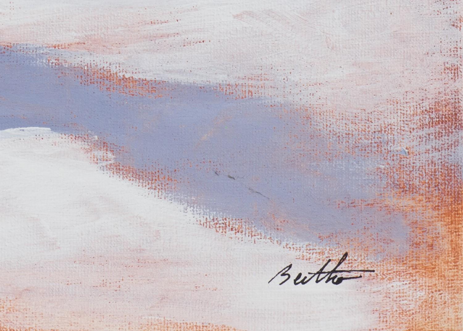 "High Mountain Expo" is an acrylic on canvas painting created by Philippe Bertho. The painting is signed 'Bertho' lower right. The canvas size is 25.5 x 21.25 inches and the artwork ships framed in a contemporary white frame. Framed dimensions are 28.75 x 24.5 inches.