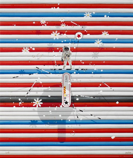 The works of Philippe Bertho are characterized by his innovative approach to both subject matter and materials. In his earlier works, he show-cased his ingenuity by depicting individuals in comical and precarious situations, and incorporating unusual materials such as rusty metal boxes, old light bulbs, and corrugated iron in his paintings. Despite bizarre settings that often conjure up uncertainty or peculiarity, his subjects exude an air of nonchalance, evoking a light-hearted atmosphere. Born in France in 1964, Philippe Bertho is a classically trained artist who has worked as a sales representative for household appliances, as a packer, as a lumberjack until eventually finding what he was looking for as fine art painter. After graduating first in his class from the Art Institute of Reims, he gained notoriety painting murals, ceilings, and posters until 1993. He also taught his trompe l’œil style to young artists and practiced regularly at copying great paintings from the masters, honing his technique. At that time, he was greatly inspired by famous contemporary trompe-l’oeil artists, such as Jacques Poirier, and focused on painting industrial sites and materials. Everything people throw in the garbage and that is destined to be recycled - corrugated iron, rusted metal boxes, light bulbs that will never light up again, the detritus he found in the old disused mines of his native country - fascinated him. “I recycle them my way, in art; I like what is damaged; I have always liked places where there is nobody, yet marks of something are remaining.” In 1995, Bertho was noticed and invited to the Lamballe “Look on Art” salon. His artwork shifted from a trompe l’œil focus to realist painting, creating imaginary but hyper-realist tableaus and worlds. In time, he became more interested in American Pop as well as ‘narrative figuration,’ inspired by artists like Norman Rockwell and the characters from the traditional European world of commedia dell’art. The desire to find balance is one of the richest themes of this work. Some works are specifically about finding balance, and there is a repetitive opposition that could be translated as “a time to act, and a time to refrain from acting.” Bertho finds balance in the same way that he puts his characters to the test and often makes them sweat in impossible situations, but he just as often paints them at rest. His paintings are endless stories; you are invited to imagine all kinds of situations for a character. They are all valid, because we all know from personal experience how complicated and varied life is. Today, Bertho’s ‘Pop Surrealist’ artworks continue their fresh and invigorating variations on his consistent theme of ‘modern humanity’ interacting daily with ordinary life. The visual situations that Bertho stages seem impossible and absurd, and yet the character, our surrogate, encounters them and tries to master them, encouraging optimism in the face of adversity. Bertho’s works have generated acclaim and garnered accolades in Europe and the United States. His art is widely collected by institutions and individual collectors worldwide.