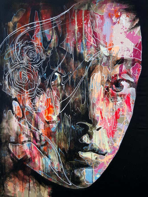 Danny is predominately a figurative and portrait artist who has a strong graphic element in his work. His expressive mixed media works incorporate; acrylics, spray paint, ink, paint markers and household gloss and emulsions. All applied in an equally diverse manner using brushes, fingers, paint rollers, sticks, paper and cardboard to create expressive and striking imagery. Danny is influenced by diverse sources including; comics, illustration, character design, tattoo art and cubism, futurism, art noveau, the pre-raphaelites, modernism and constructivism all pulled together to create hyper stylised and abstracted works.