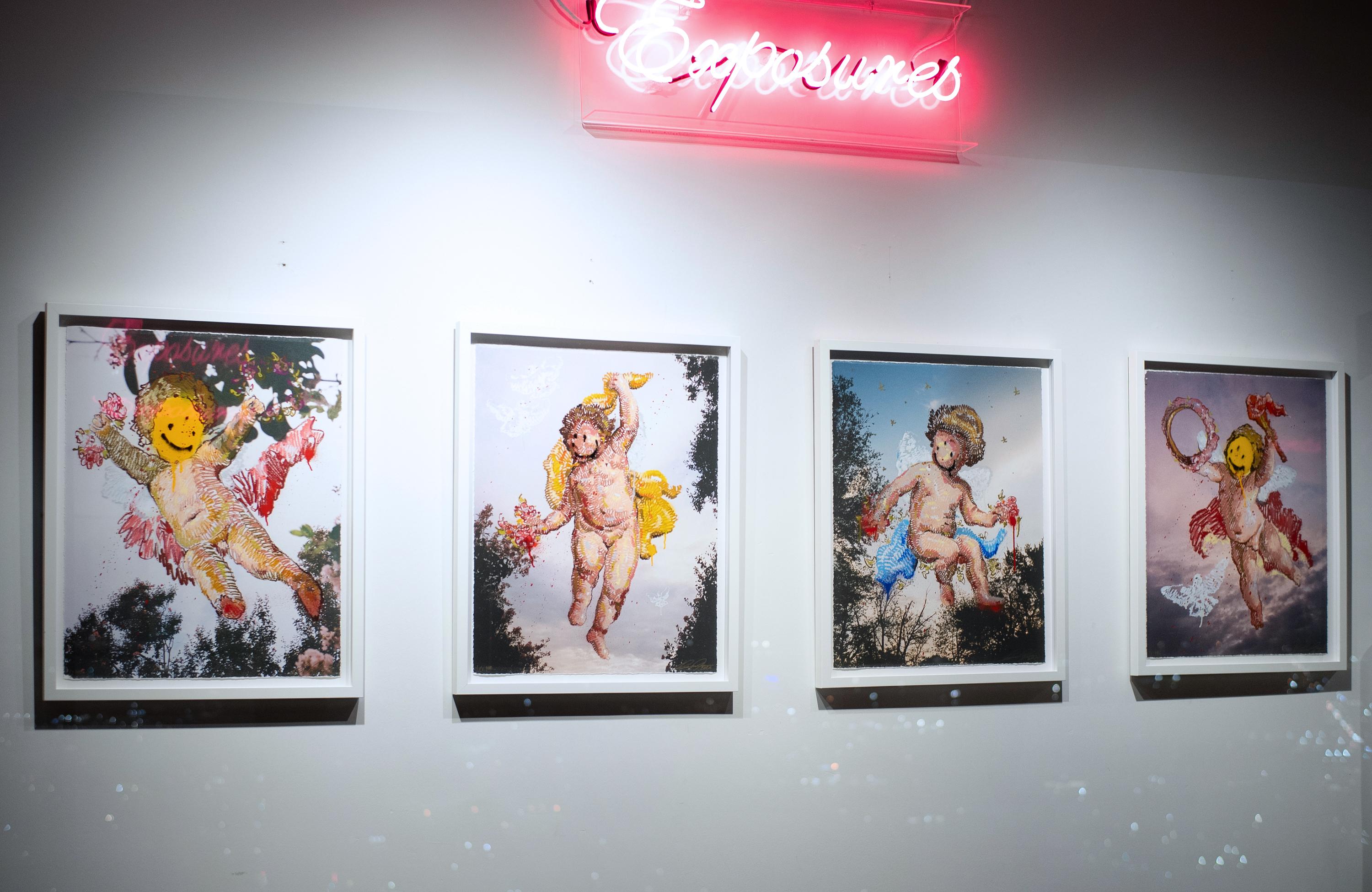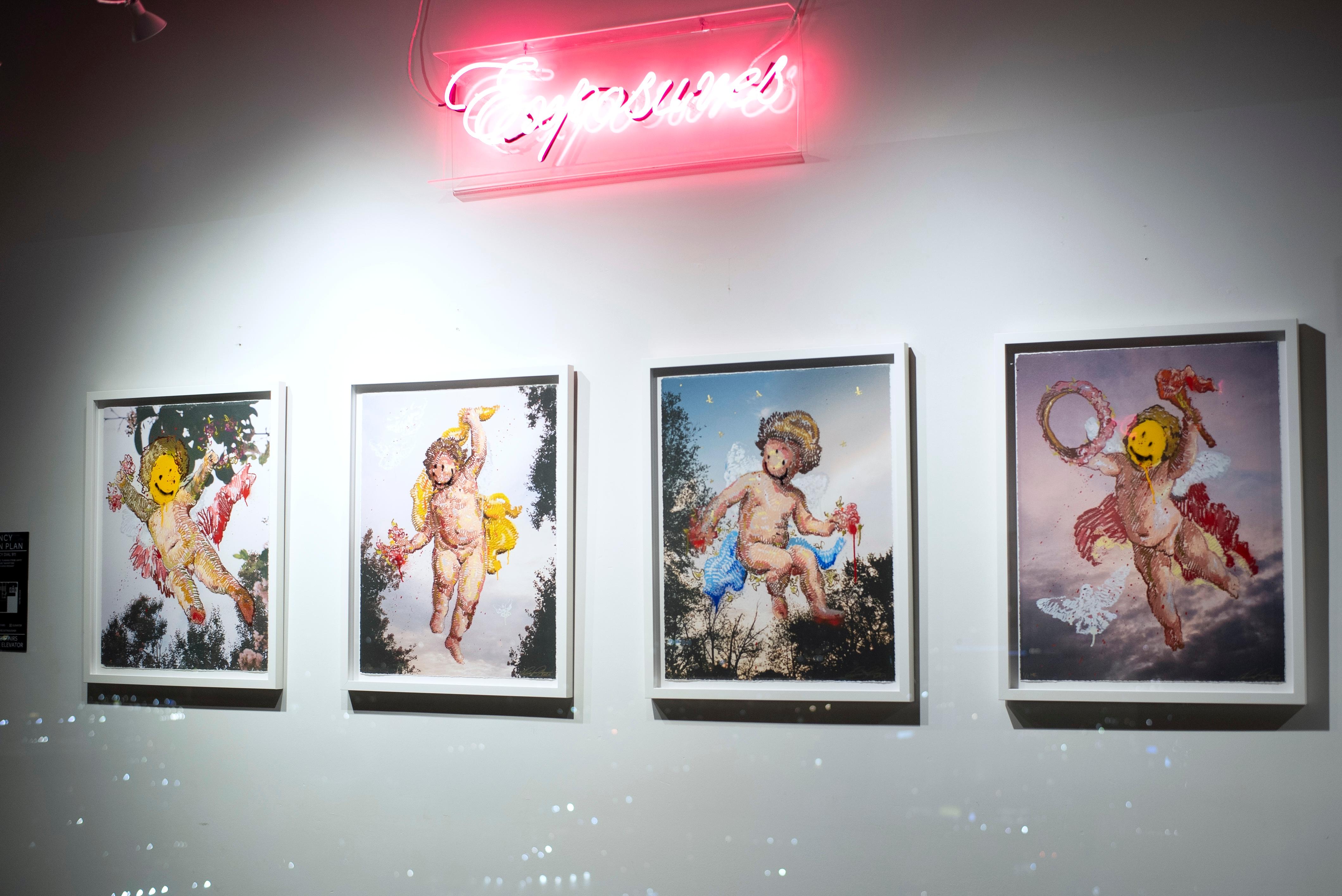 Pelayo is often described as the coming of A New Renaissance. The juxtaposition between his meticulously rendered brushwork of classical style imagery and loose expressionistic careless drips with the use of oil paints, spray paint, and oil sticks create a dramatic atmosphere that is nothing less than a sexy intoxicating marriage of two worlds that don’t inherently belong. The motifs we see in his paintings feature a third eye accompanied by a smiley face which was also adopted by Westside Gunn on several projects during the 2020 Covid-19 pandemic which led to Isaac’s recent growing success.