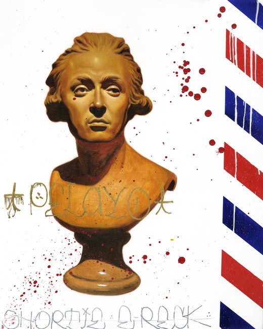 This corpus of work is a remarkable masterwork that inspires introspection and discussion among people from a wide range of backgrounds. The juxtaposition of two art styles that could not be more different from one another provides a balance between the destructive and the creative. The contrast between his precise and detailed brushwork depicting classical imagery as well as the casual and spontaneous drips created by using oil paints, spray paint, and oil sticks, results in a captivating atmosphere. Indubitably, it can be described as a fascinating and captivating fusion of two contrasting worlds. It is precisely this equilibrium that gives Pelayo's art its distinctive quality.