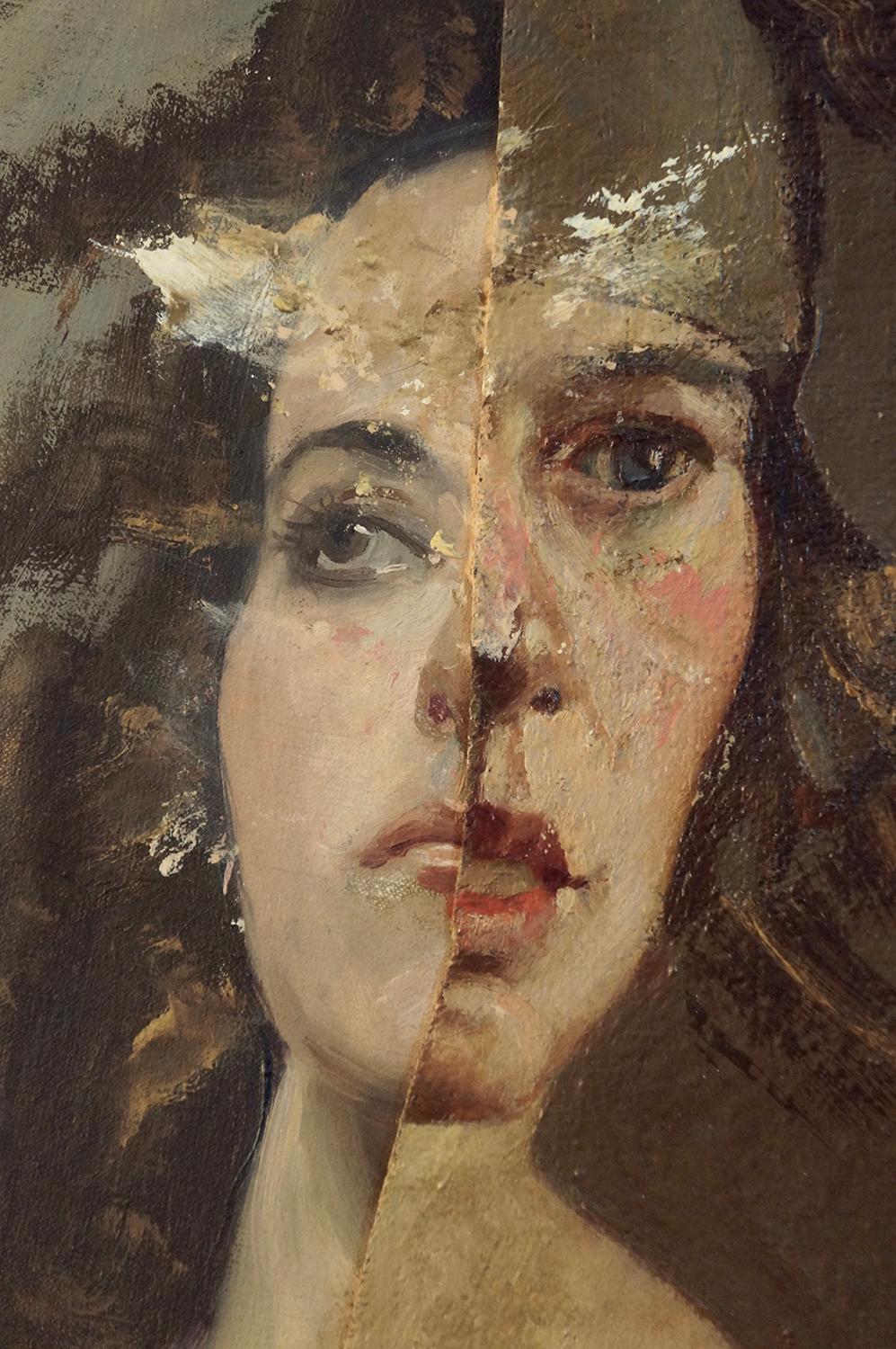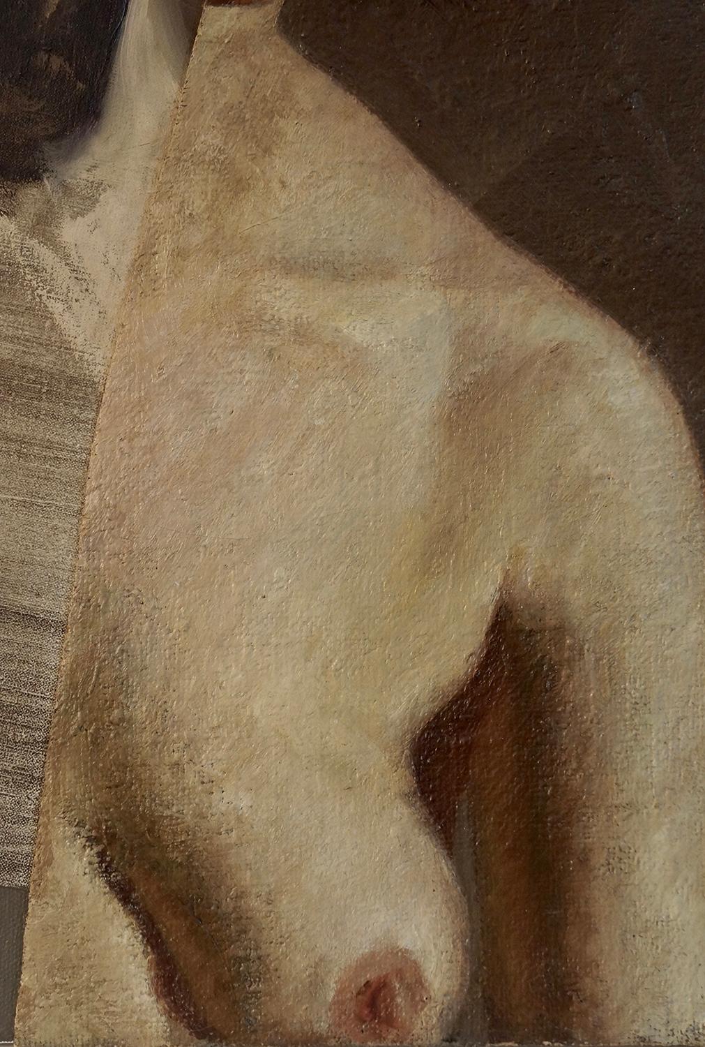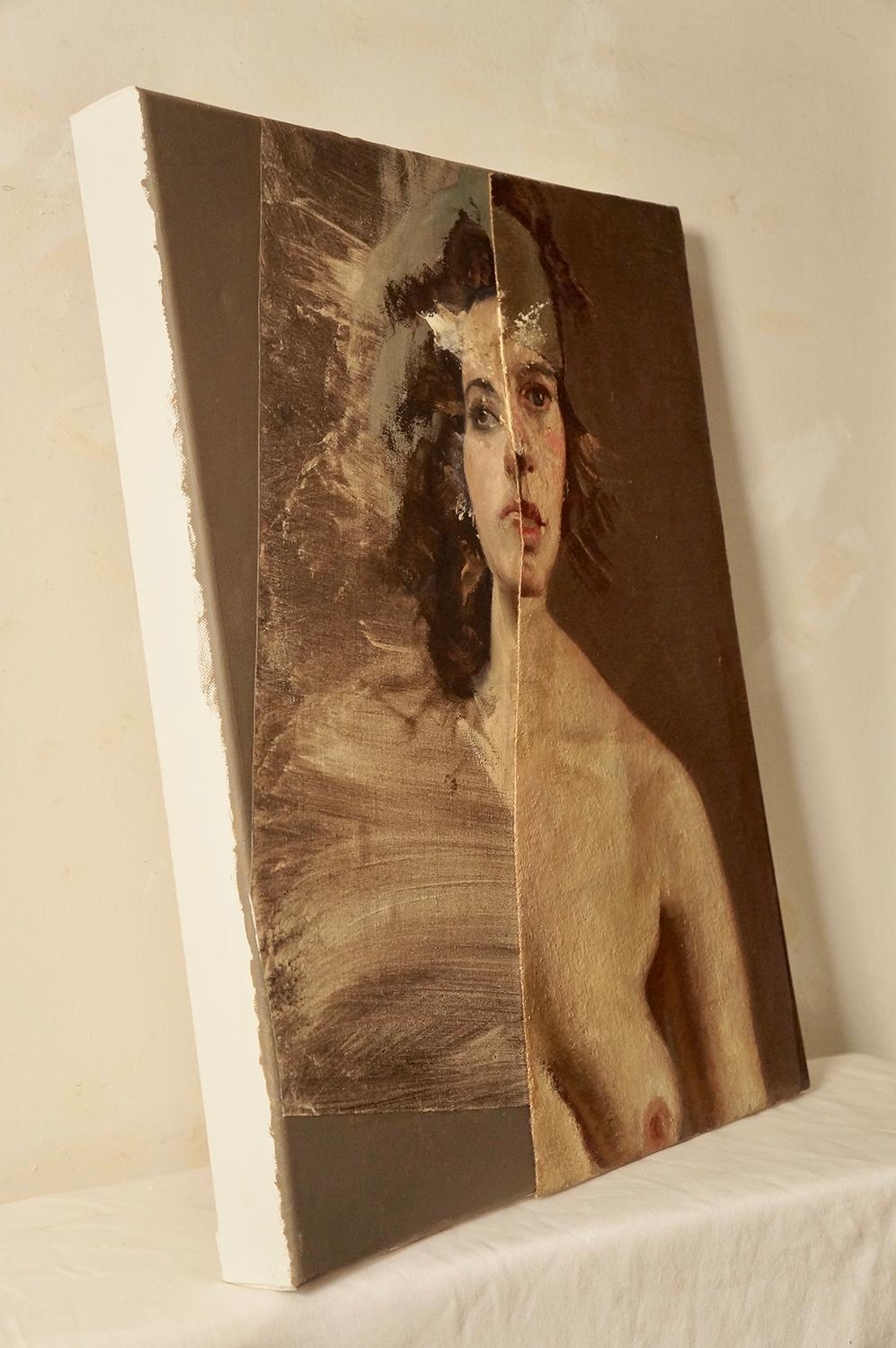 John Baker"Studio Sketch of Ella", Surrealist, Cream, Brown, Collage, Acrylic Painting2020