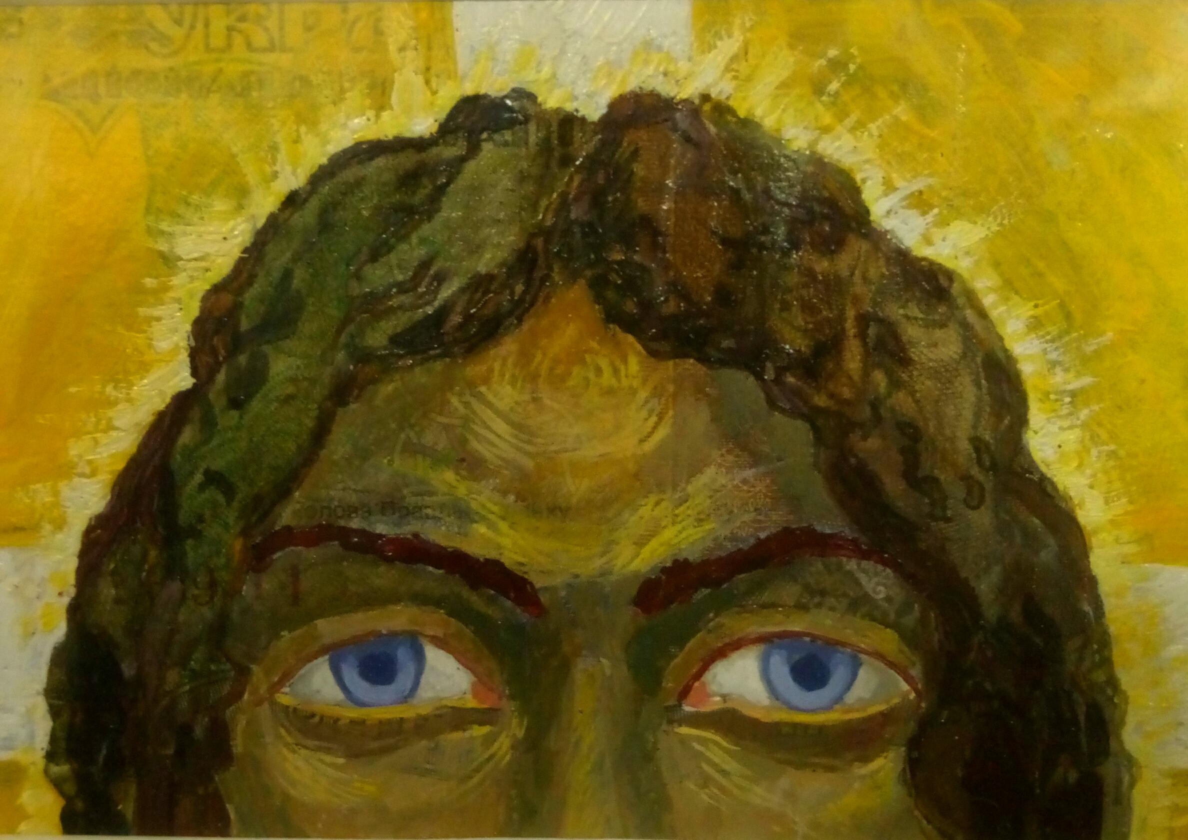 The painting is painted on a Ukrainian 1 hryvnia banknote. The frame is made of oak and plastic.