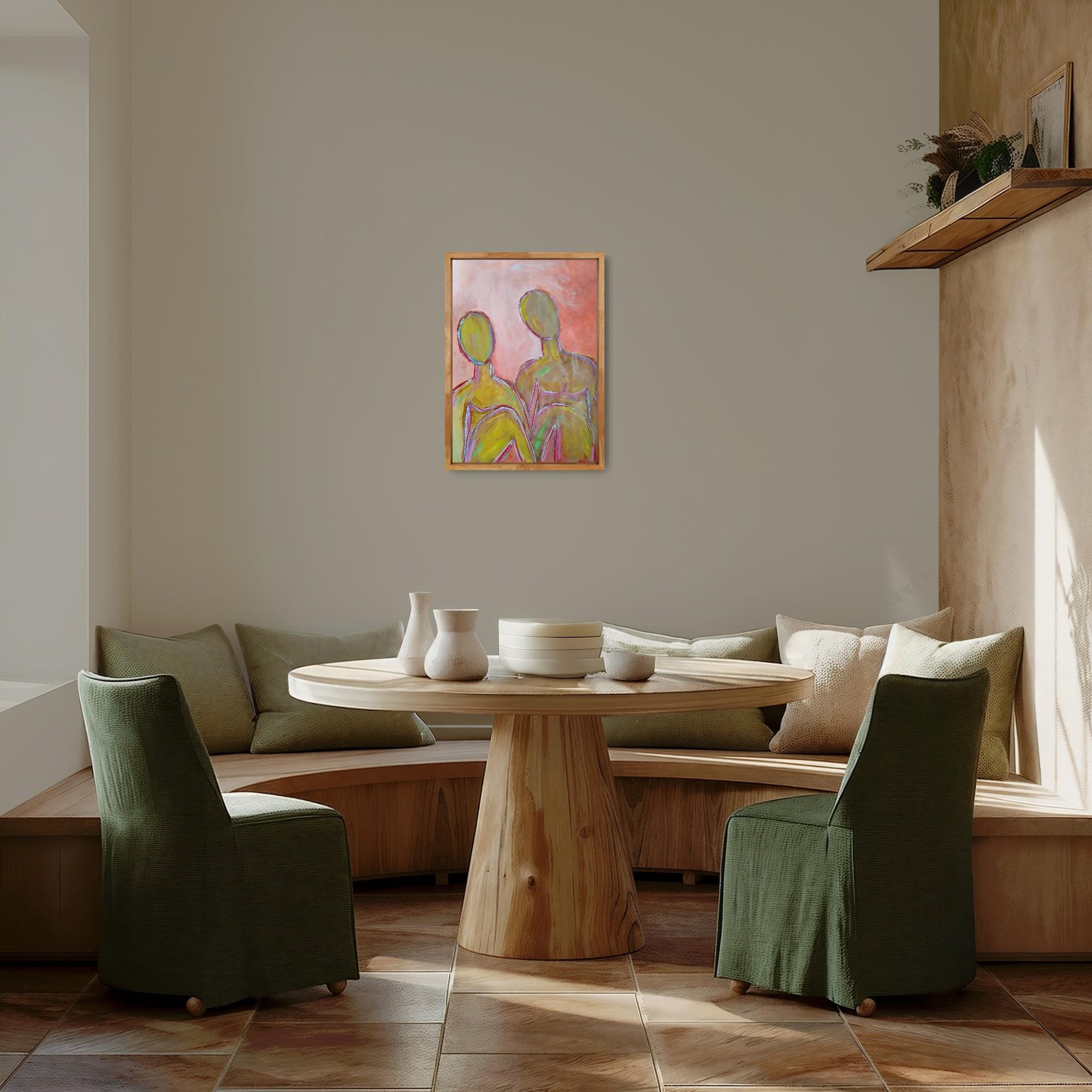 With its warm palette and abstract human presence, "Two Souls" harmonizes beautifully with modern, minimalist, or eclectic interiors. Its soft pinks and earthy golds bring warmth to neutral spaces, while its expressive lines and emotional depth create a striking focal point in living rooms, art-filled studios, and serene bedrooms. Ideal for collectors seeking artwork that combines emotional resonance and aesthetic harmony, this painting adds both color and meaning to contemporary interiors.