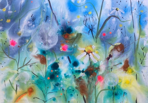 Rachael’s works on paper are particularly organic. Diluted paint is allowed to migrate on a damp surface, sticks are used ...