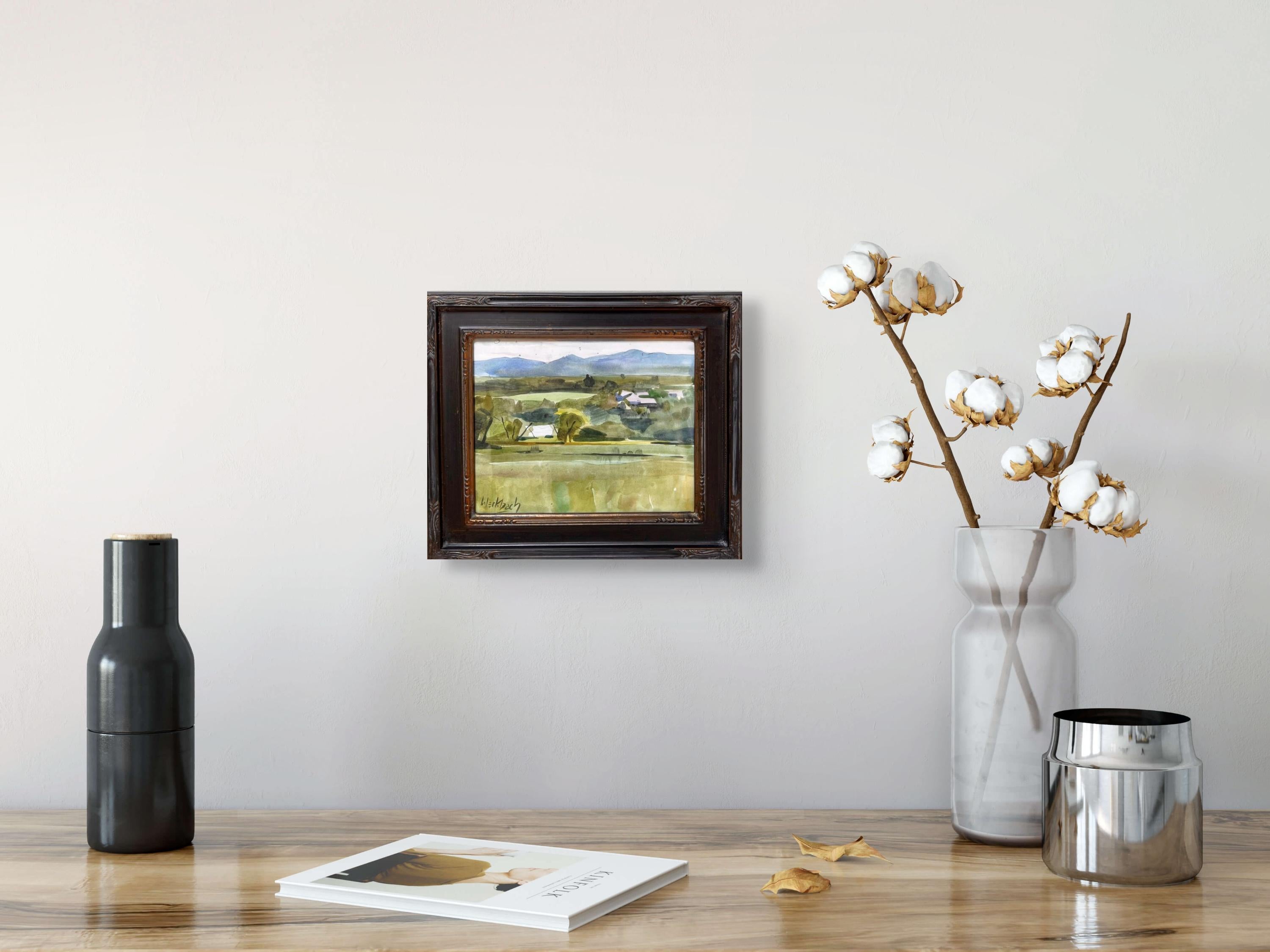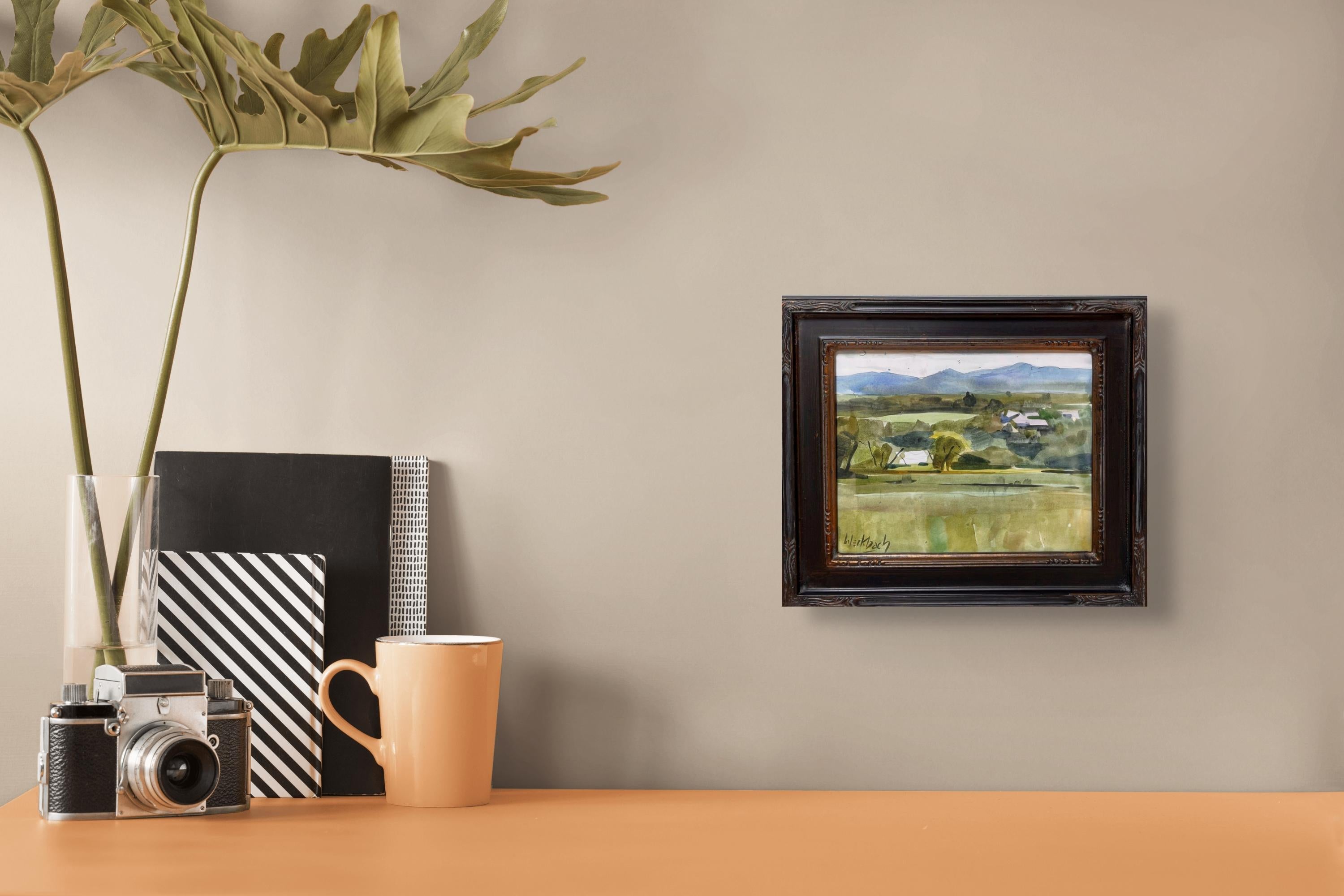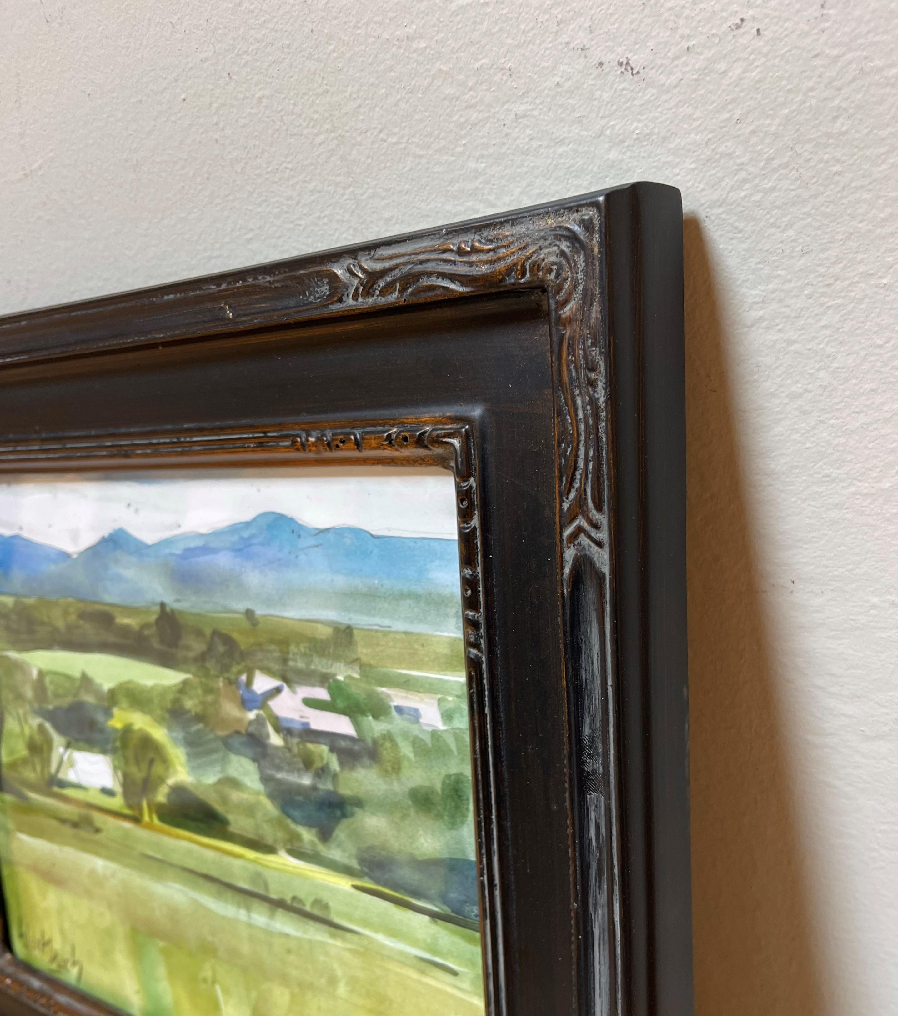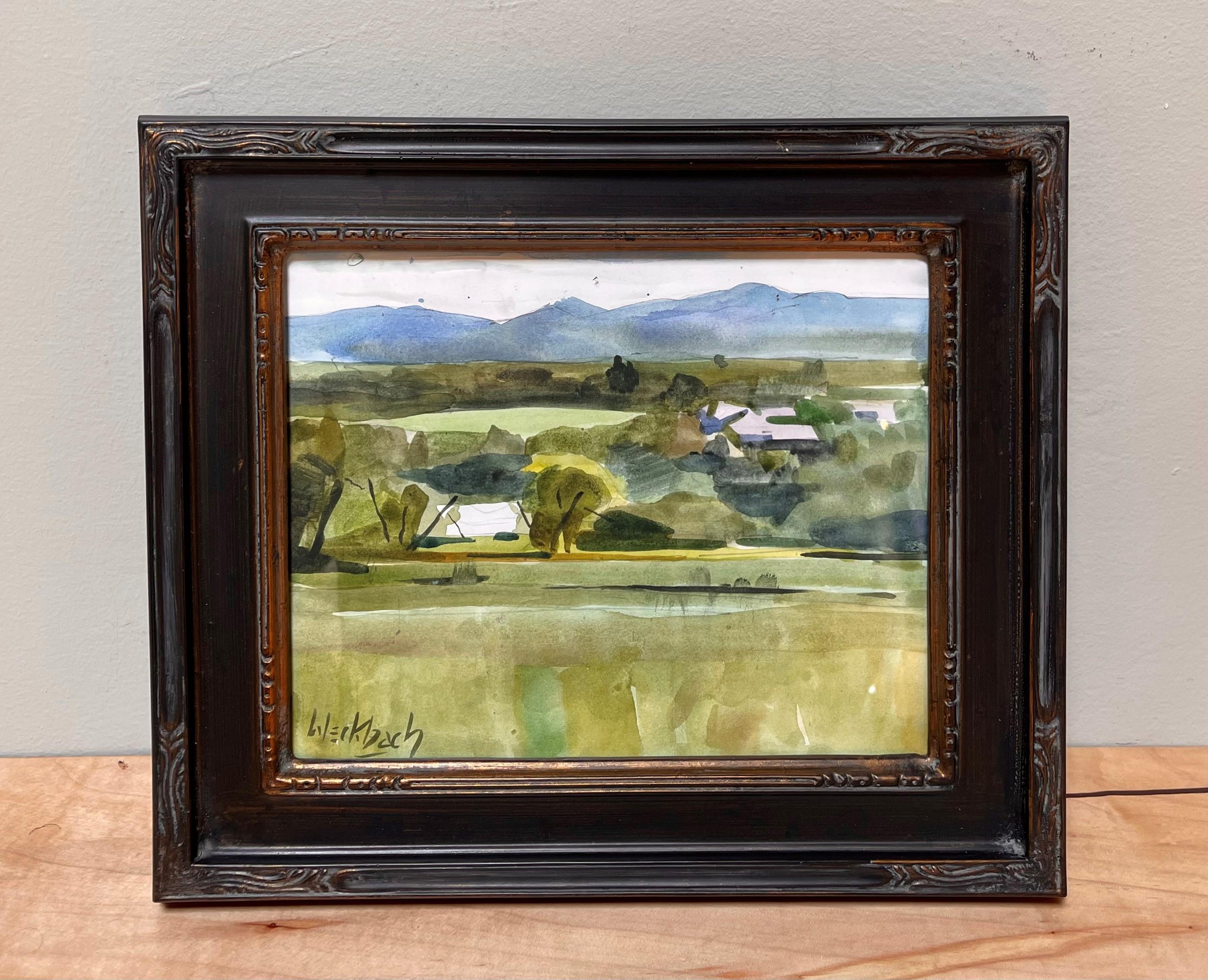 Title: Mid Century French Original Watercolor of Sunlit Fields