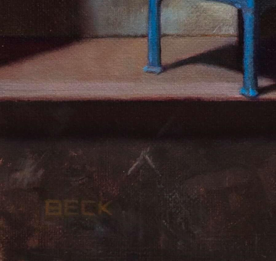 Julie Beck's "Idols, Not Masters" is an oil painting on canvas panel that measures 18 x 18 inches framed and is ready to hang.