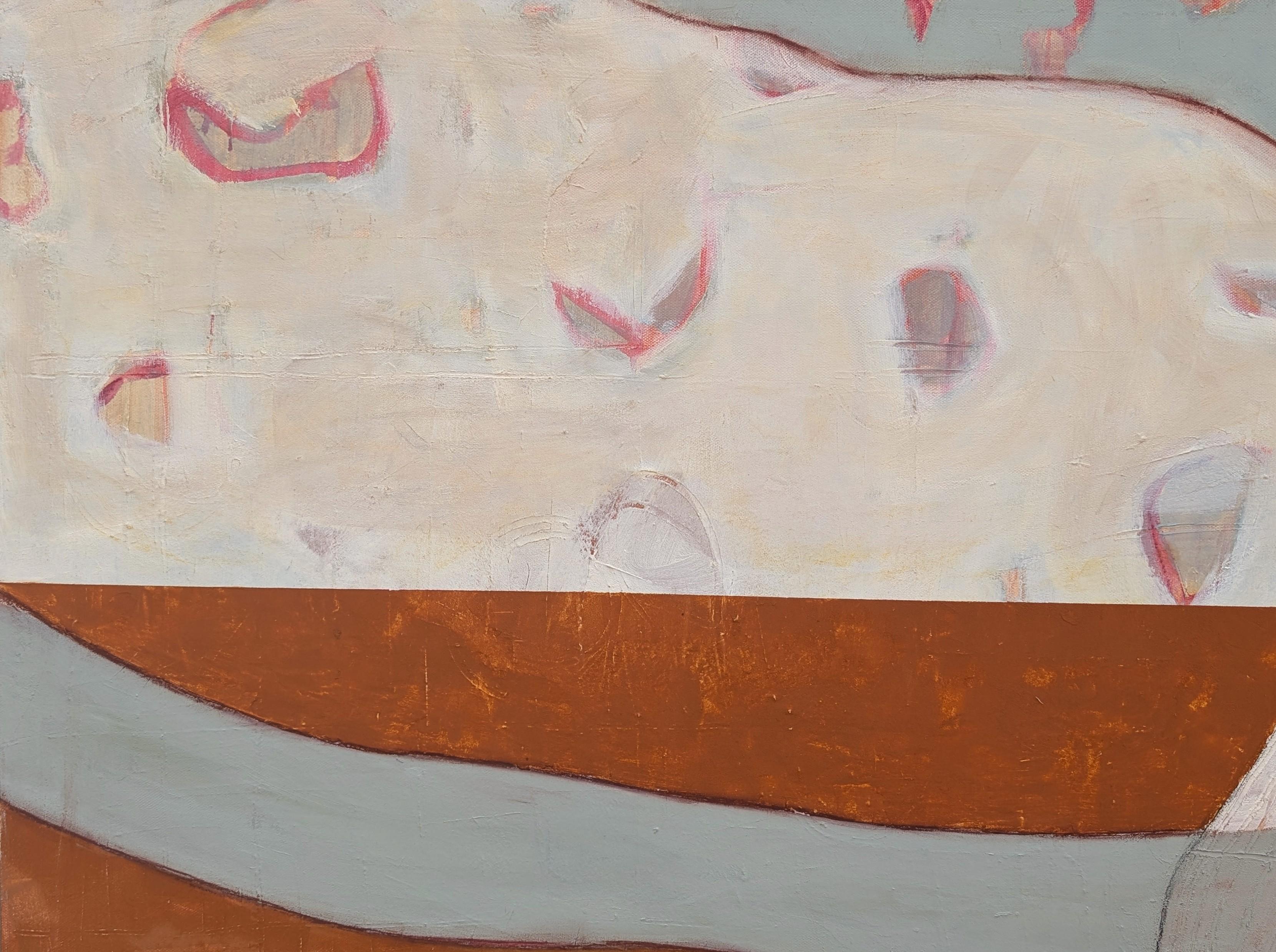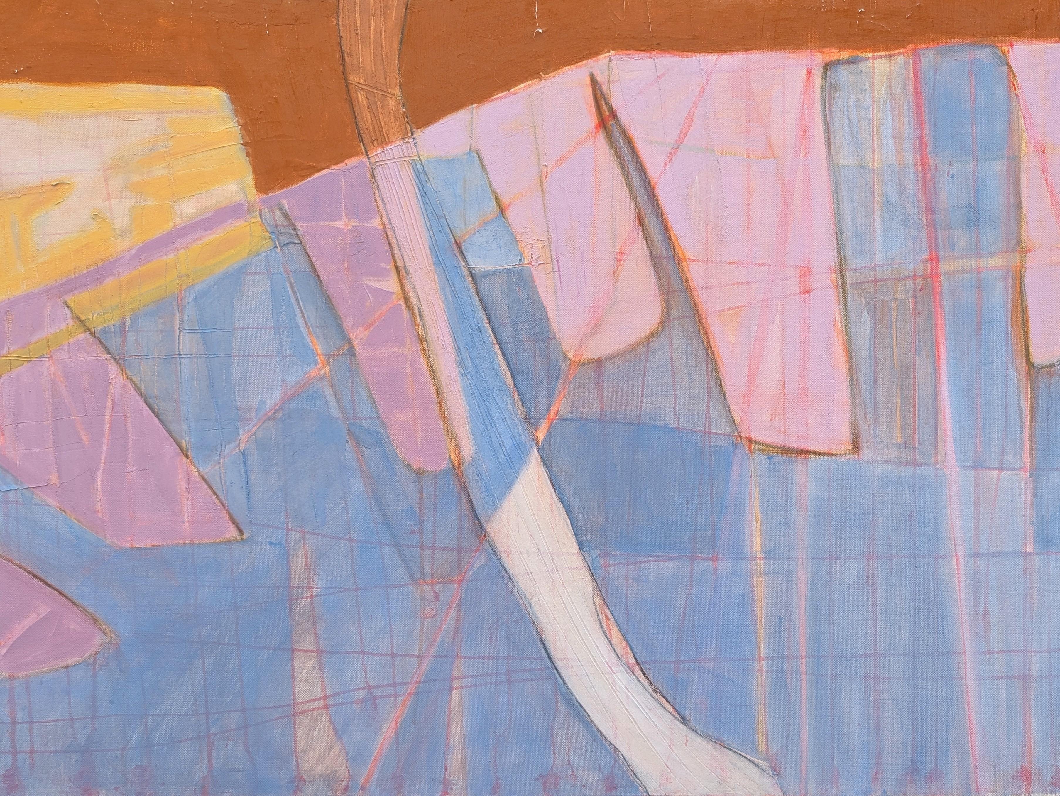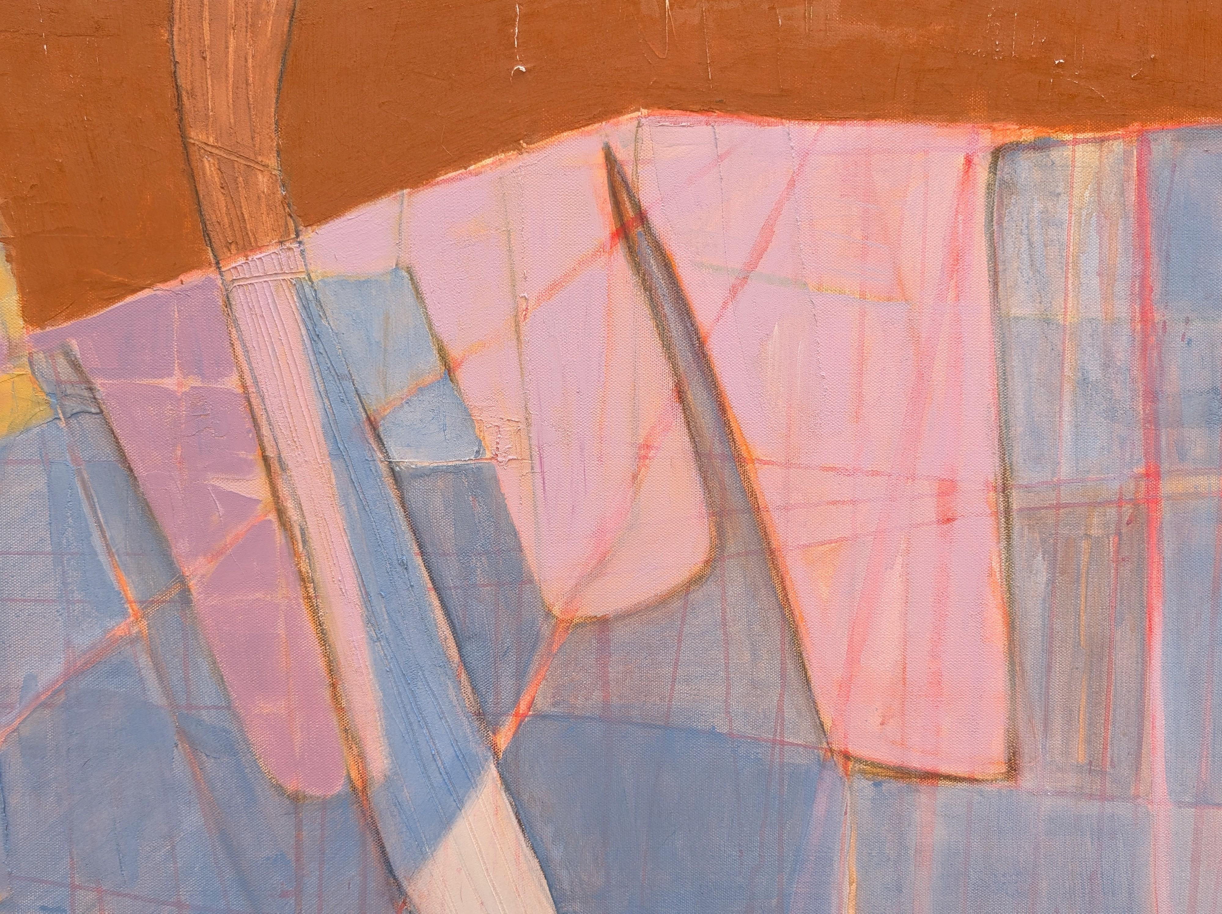 Another Place (Oil on panel, abstract, pastel, pink, shapes, texture)