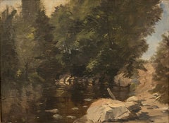 "Fishing by the Bridge" Joseph Jefferson, American Landscape, Barbizon School