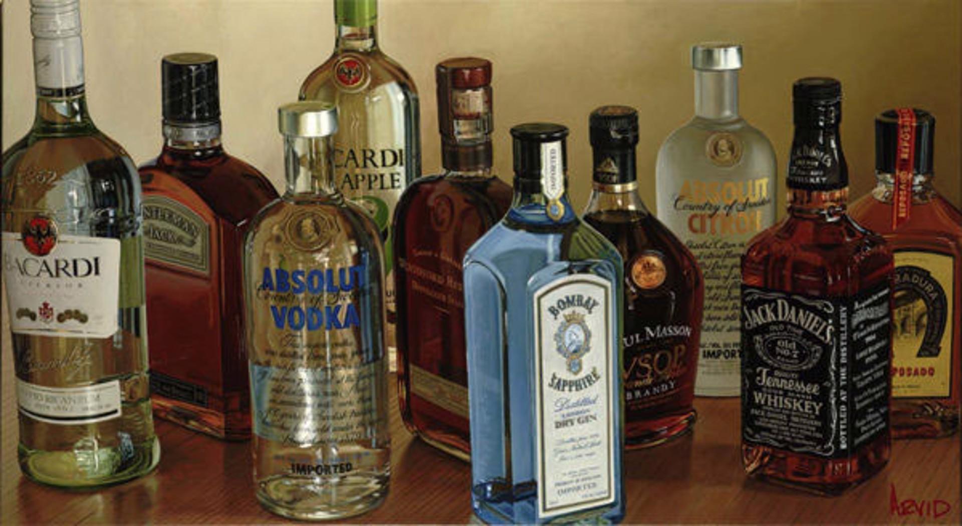 Ken Orton, "Tonic", Photorealistic Colorful Bottles Still Life Oil Painting
