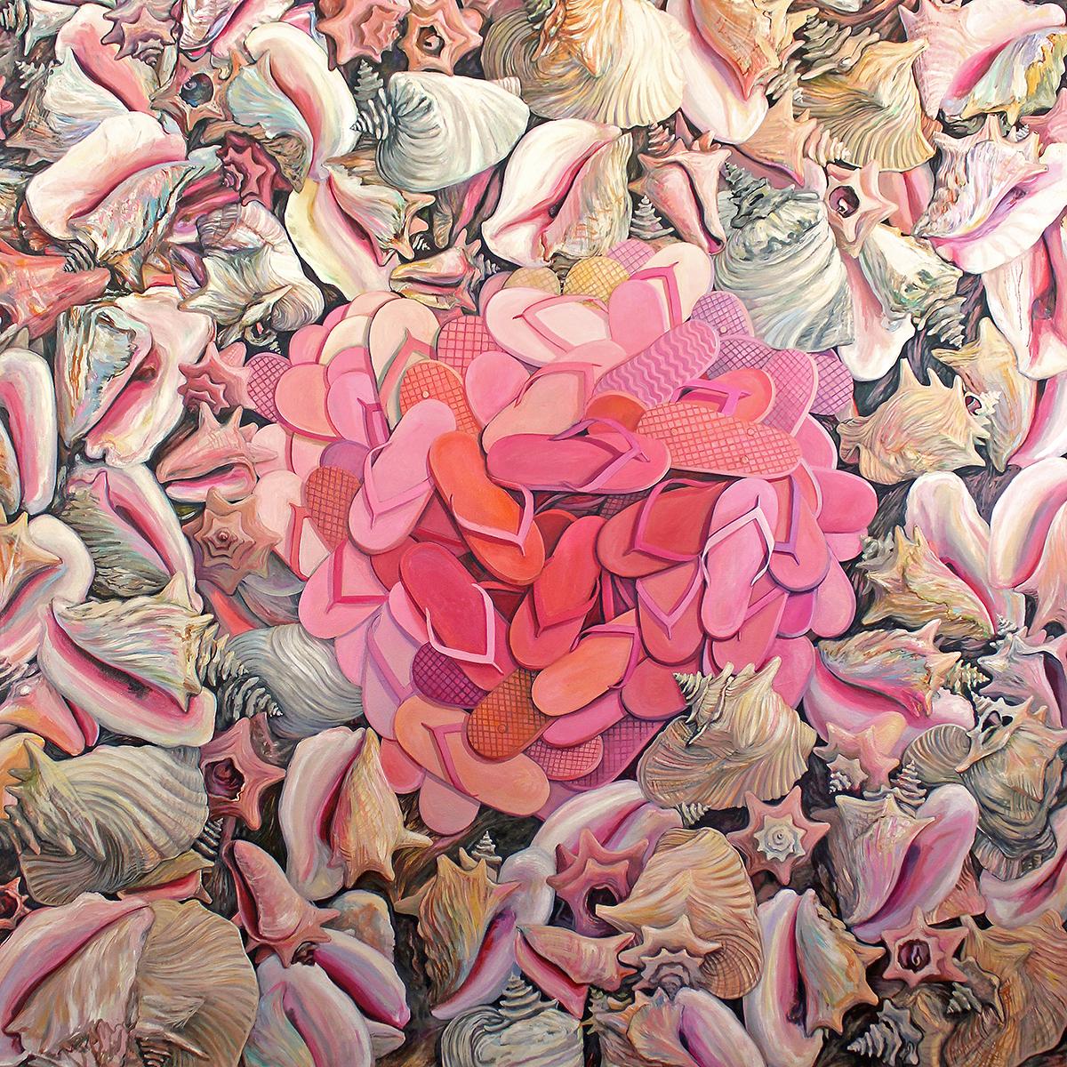 The palette combines warm flesh tones with luminous pinks and greens, reflecting the Mediterranean light and painterly tradition associated with Spanish Impressionist figurative painting.