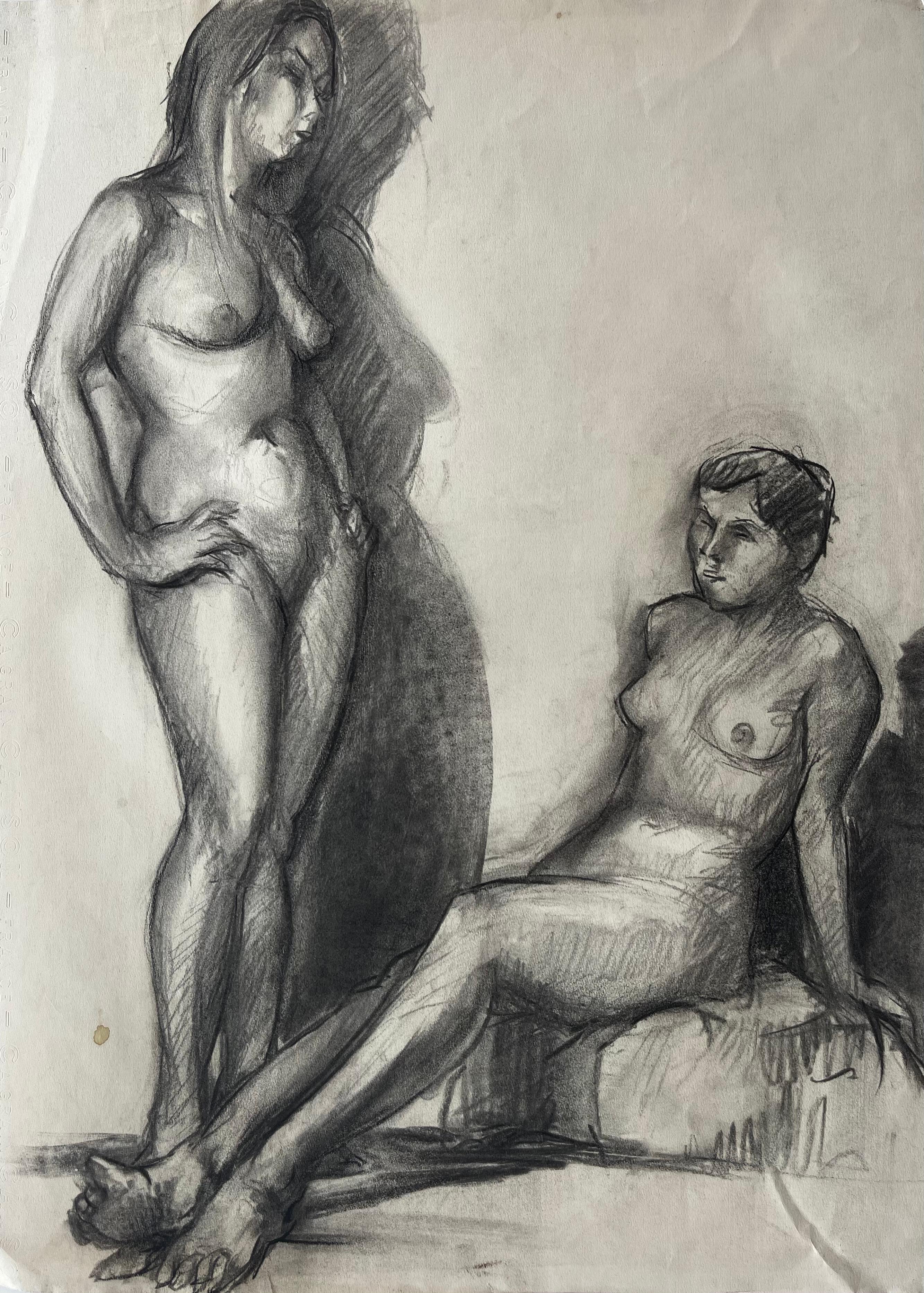 Two male Nudes. Painting.Pastel, carbon pencil, ink on archival paper mounted