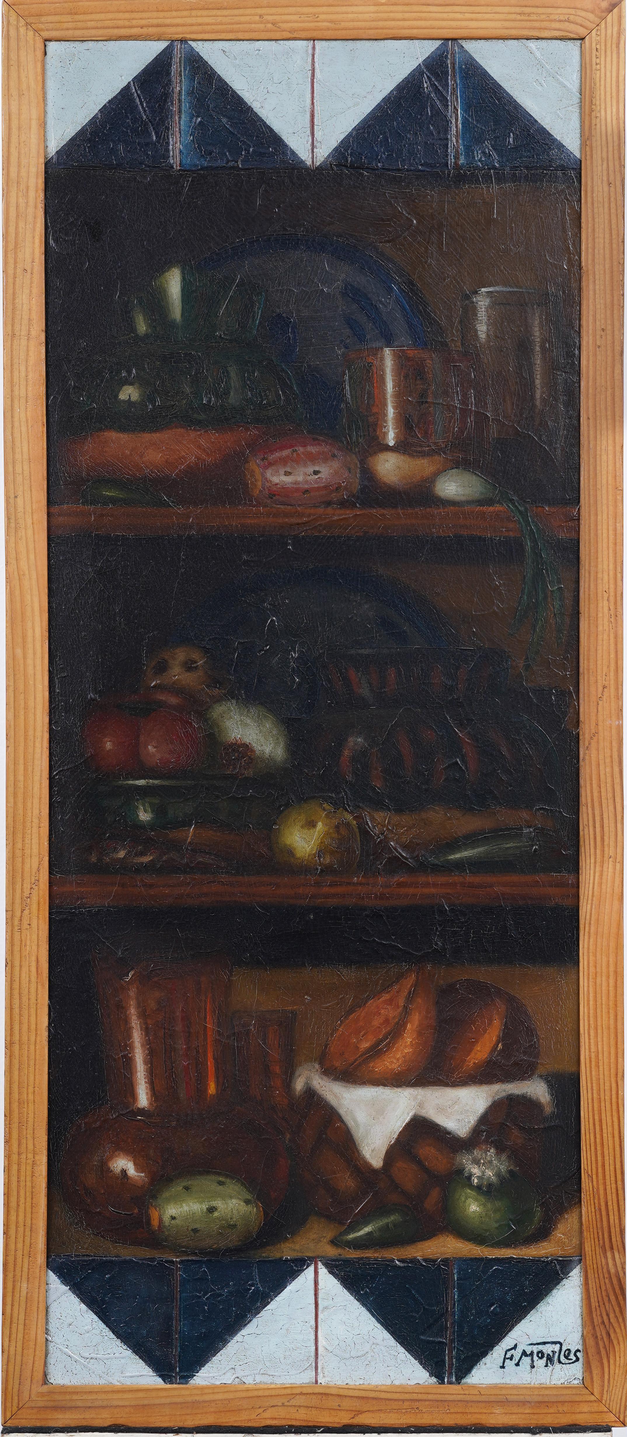 Cubist-Inspired Portrait, Oil on Board, Framed, Late 20th Century