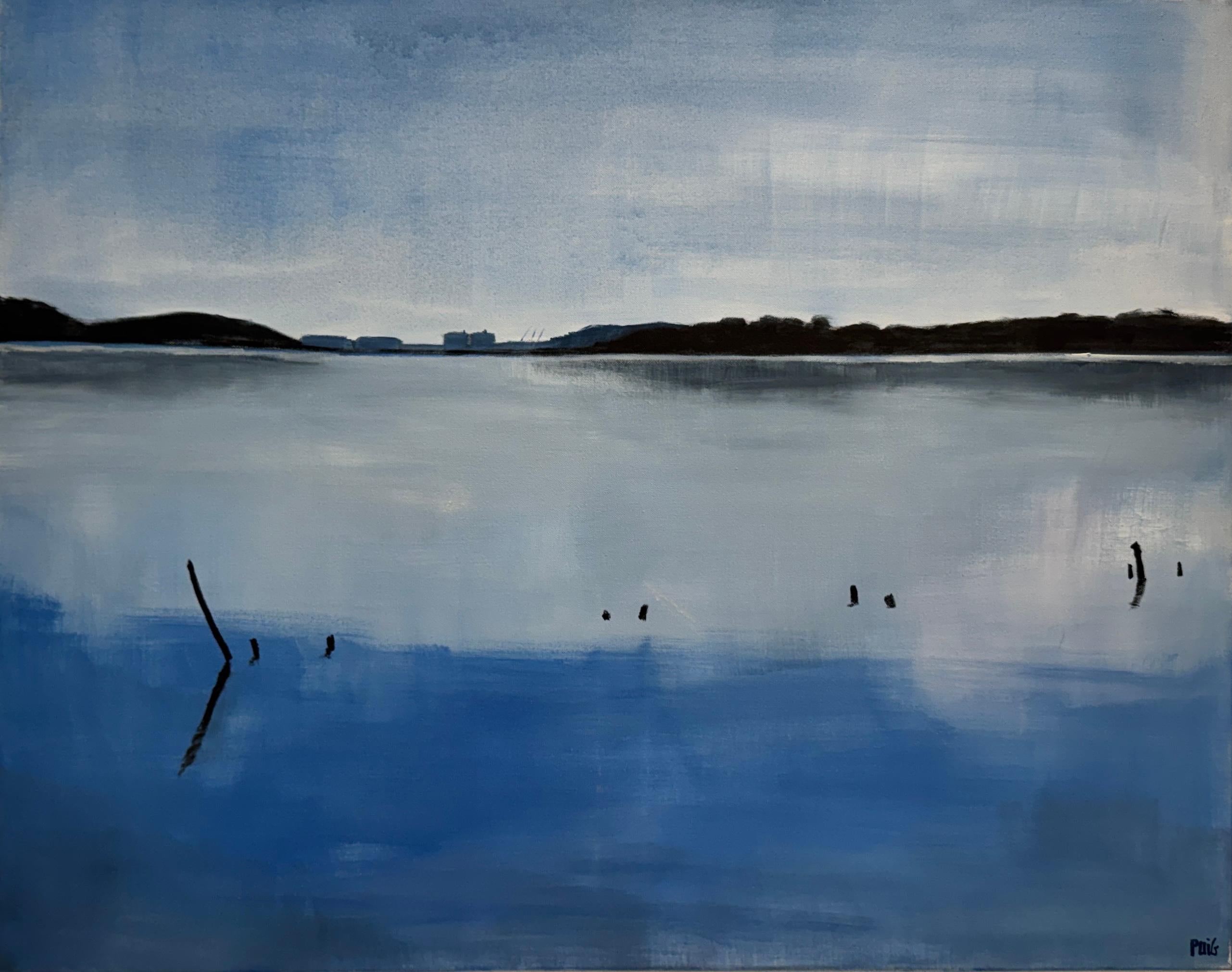 Set against an expansive yellow field, a cluster of white farmhouses stands at ease near the horizon. The scene whispers of silence, space, and distance. The co...