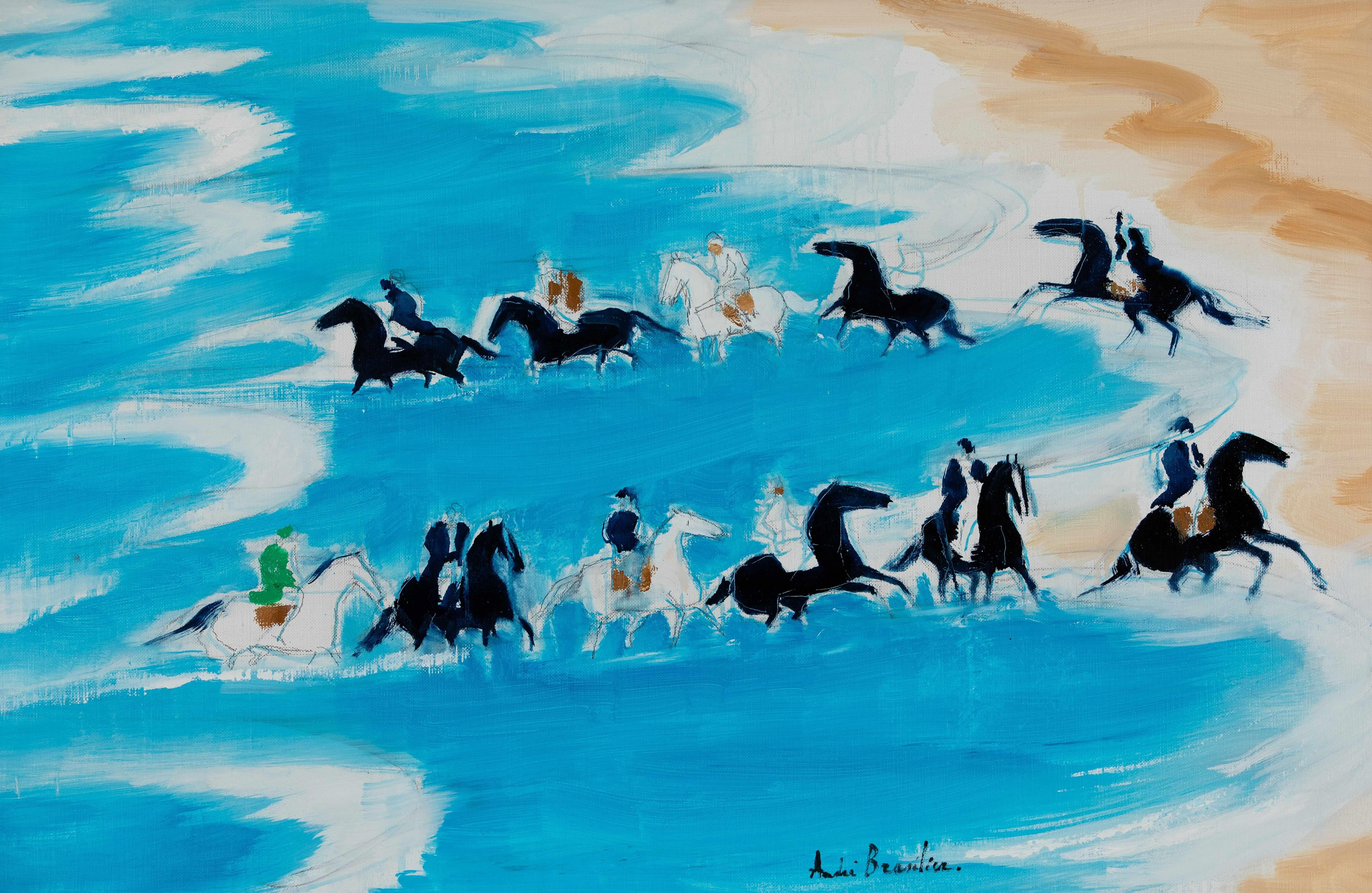 Ocean Beach Seascape Oil Painting Children Playing Michael Budden Summer Play