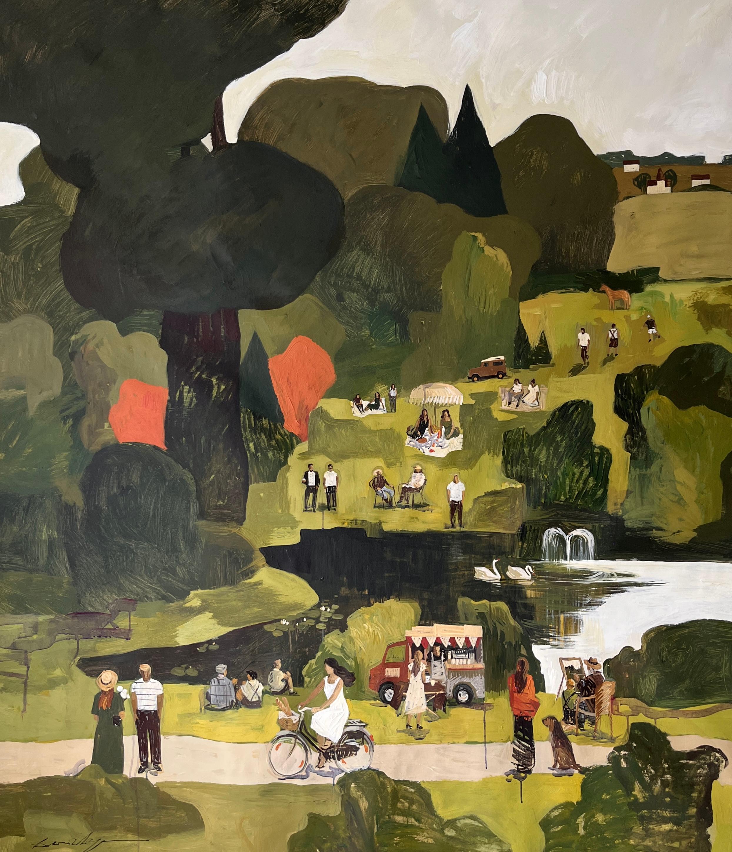 Tranquil French River Landscape with Trees Reflections Impressionist Painting
